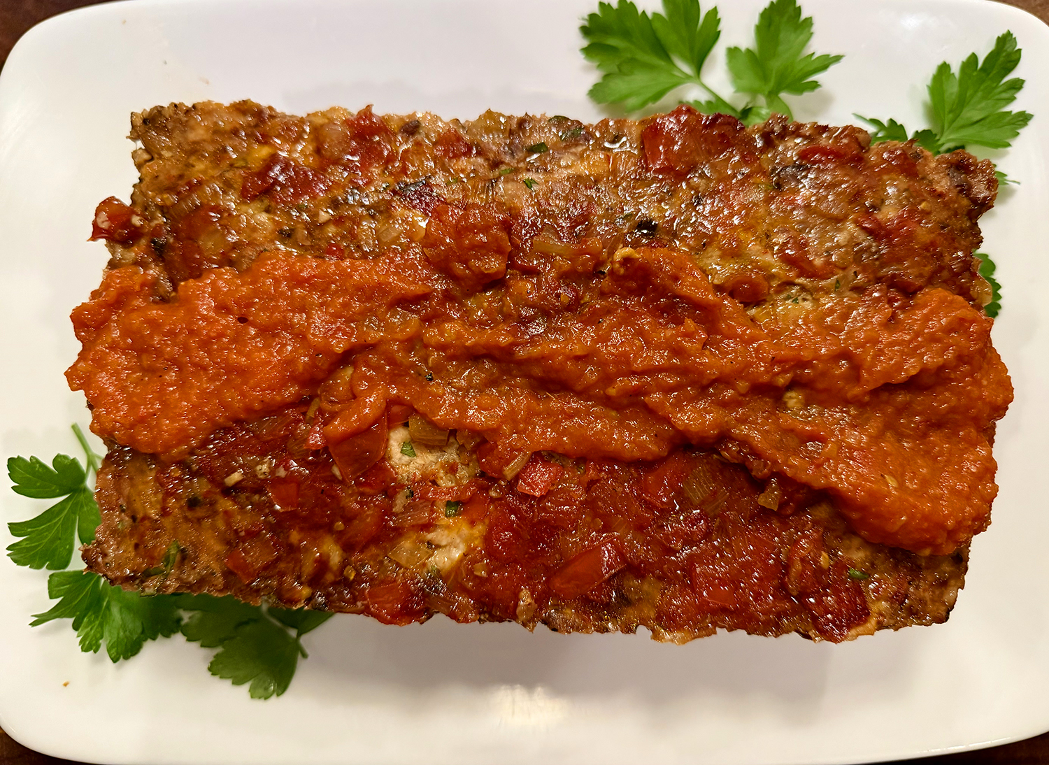 Umami Meatloaf with Red Pepper-Tomato Sauce