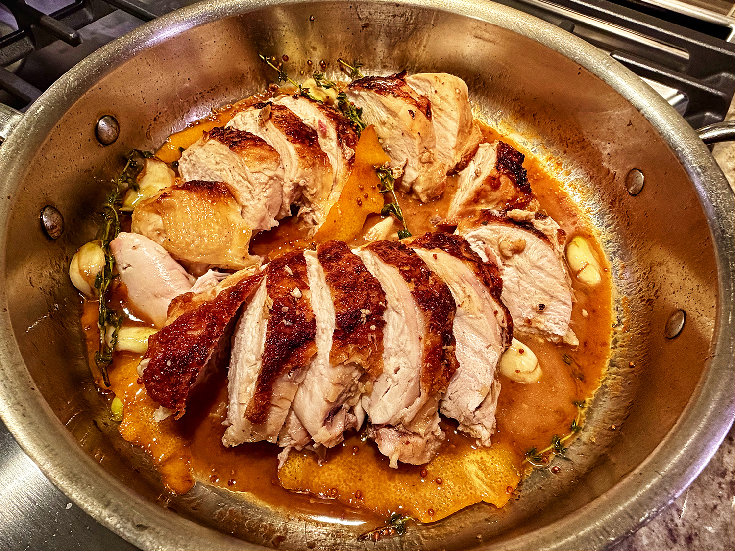 Skillet-Roasted Chicken Breasts with Rustic Orange-Thyme Sauce