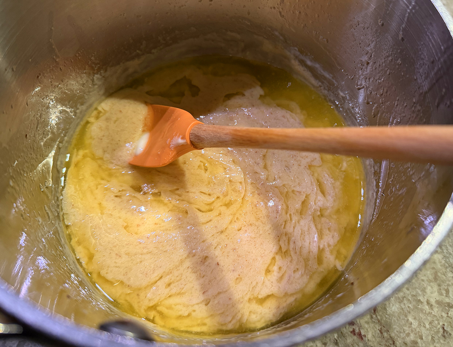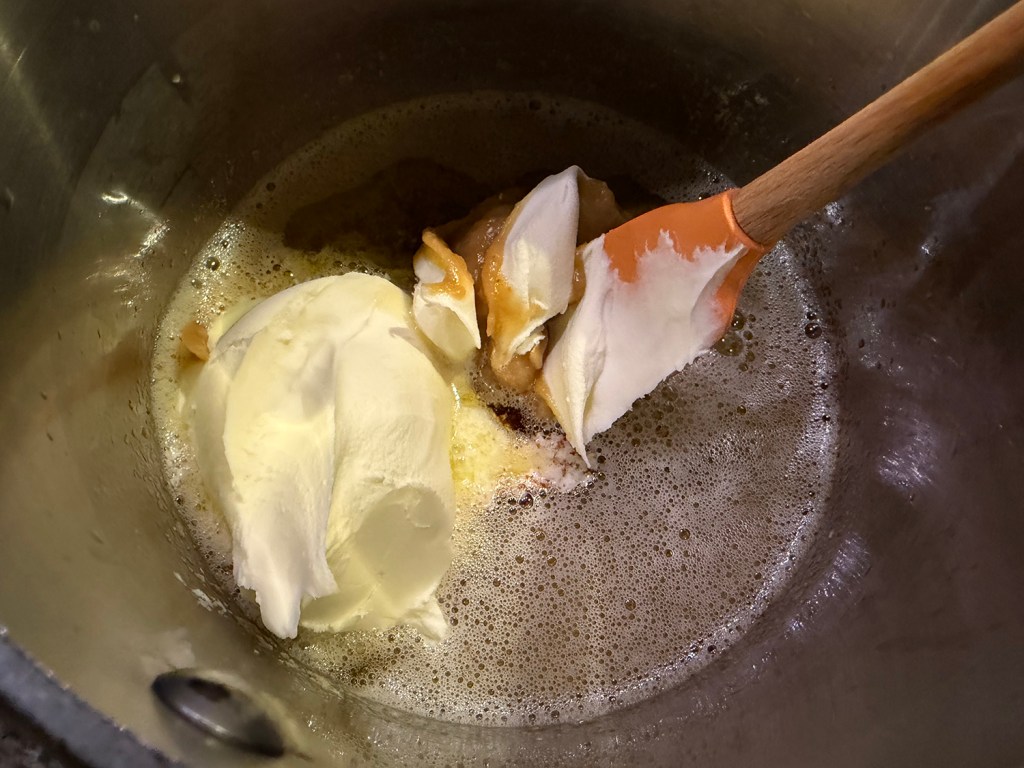 - In a small saucepan heat butter over medium until it starts to brown, 7 minutes. Remove from heat. Stir in mascarpone cheese and garlic paste until cheese is melted. Add mascarpone mixture to potatoes in pot. Let stand, uncovered, 2 minutes. In another small saucepan, heat milk over low until very warm.