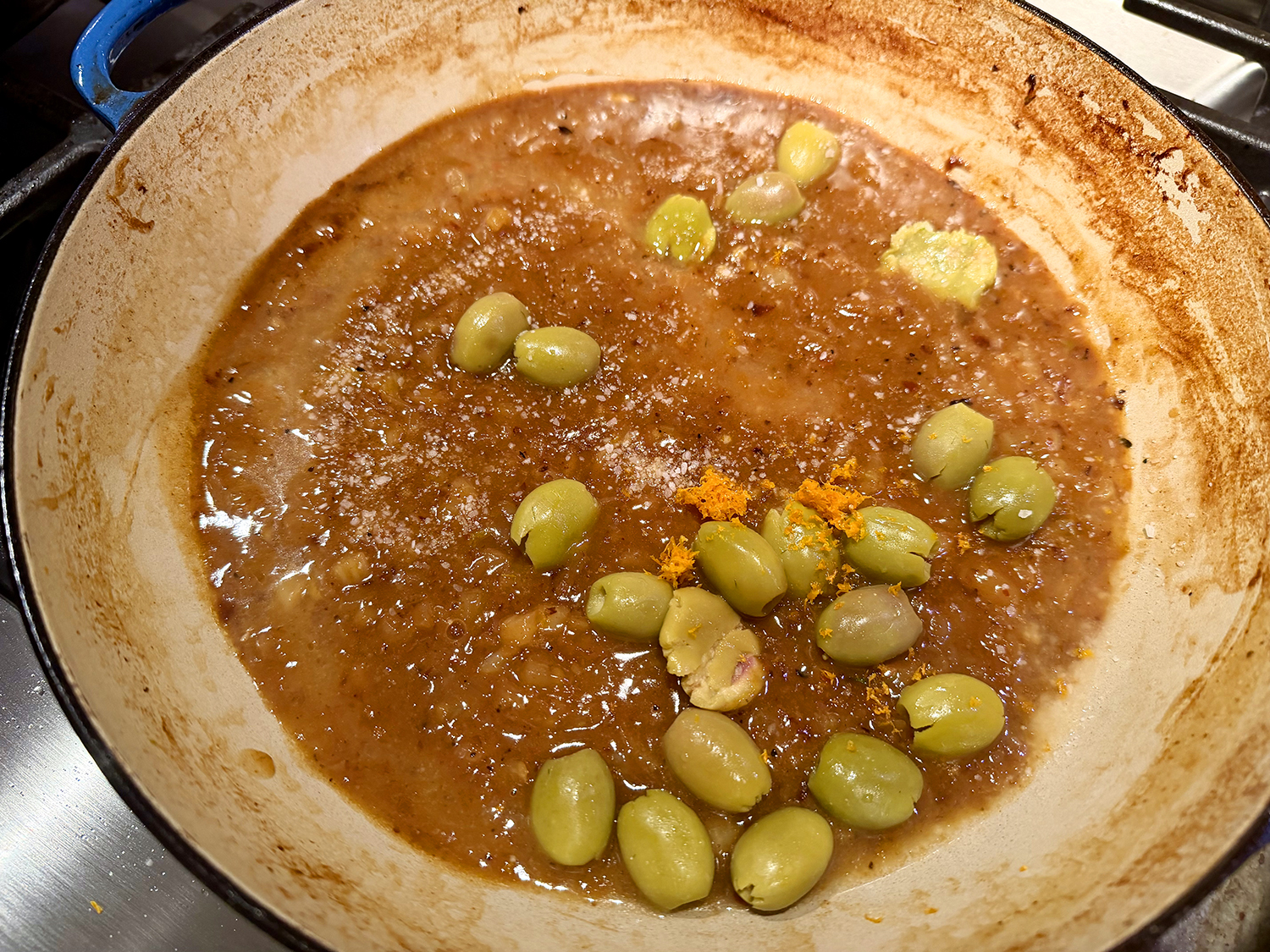 To finish that incredible sauce, the braising liquid is reduced to concentrate its flavors before whisking in a cornstarch slurry to thicken it to a luxurious, velvety consistency. Last-minute additions of olives, orange zest, and minced fennel fronds make for a deliciously fragrant finish.