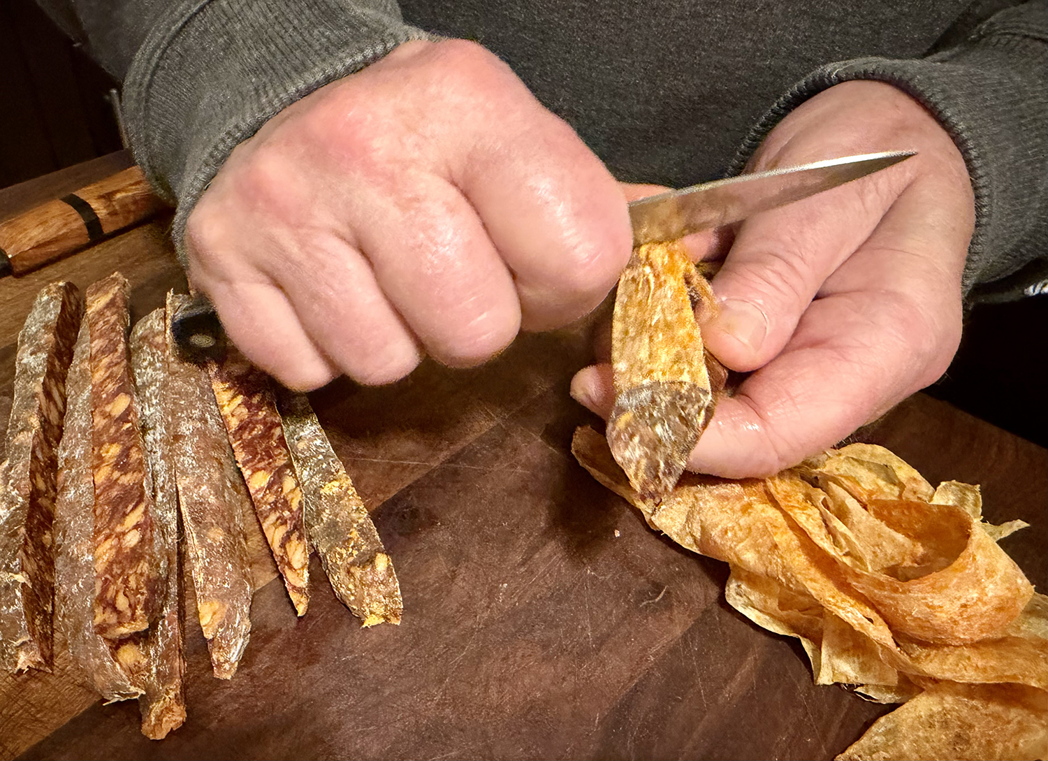 - 6 oz. Spanish chorizo sausage, skins removed, quartered lengthwise and sliced ½ inch thick