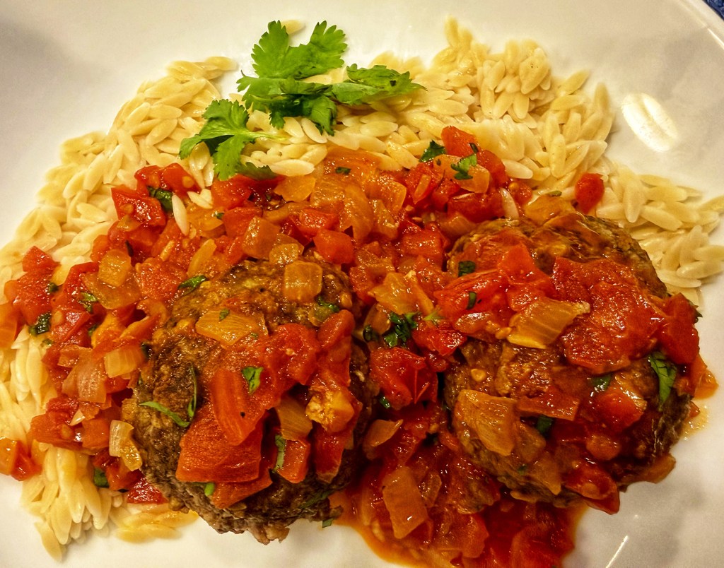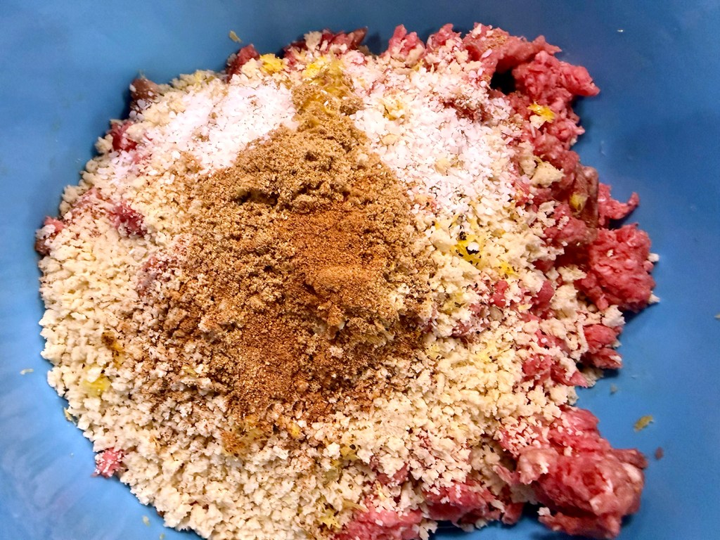 Unexpected yet familiar, the seasonings are ground coriander and nutmeg which offer cozy warmth, while a hit of lemon zest brightens the beef. A heady amount of garlic lends extra pizzaz and anchors the meat mixture with savory notes.