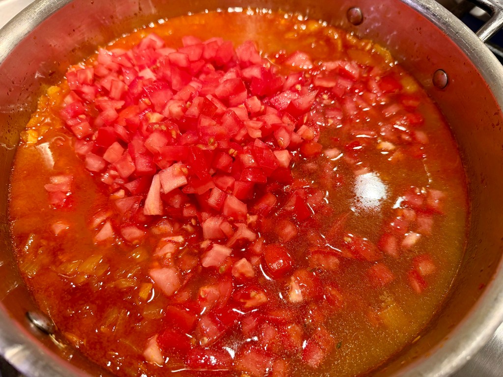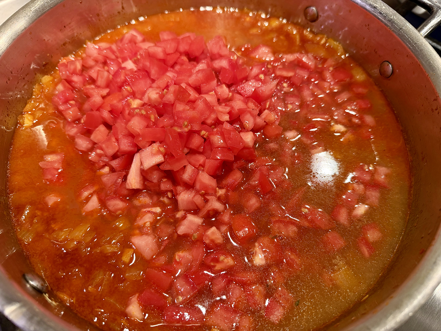 *Because it was the dead of Winter when we made this dish, local homegrown Roma tomatoes were not available. Instead of using the shipped-in grocery store offerings, we suggest using canned tomatoes for more robust color and flavor.