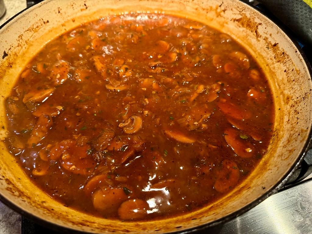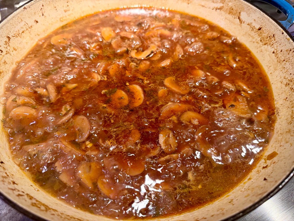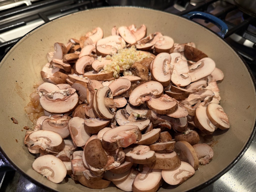 - 3/4 lb. mushrooms, sliced