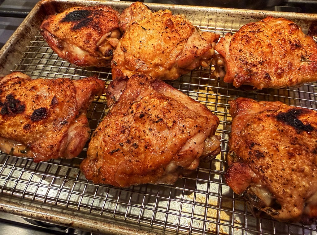 - 6 bone-in, skin-on chicken thighs, trimmed