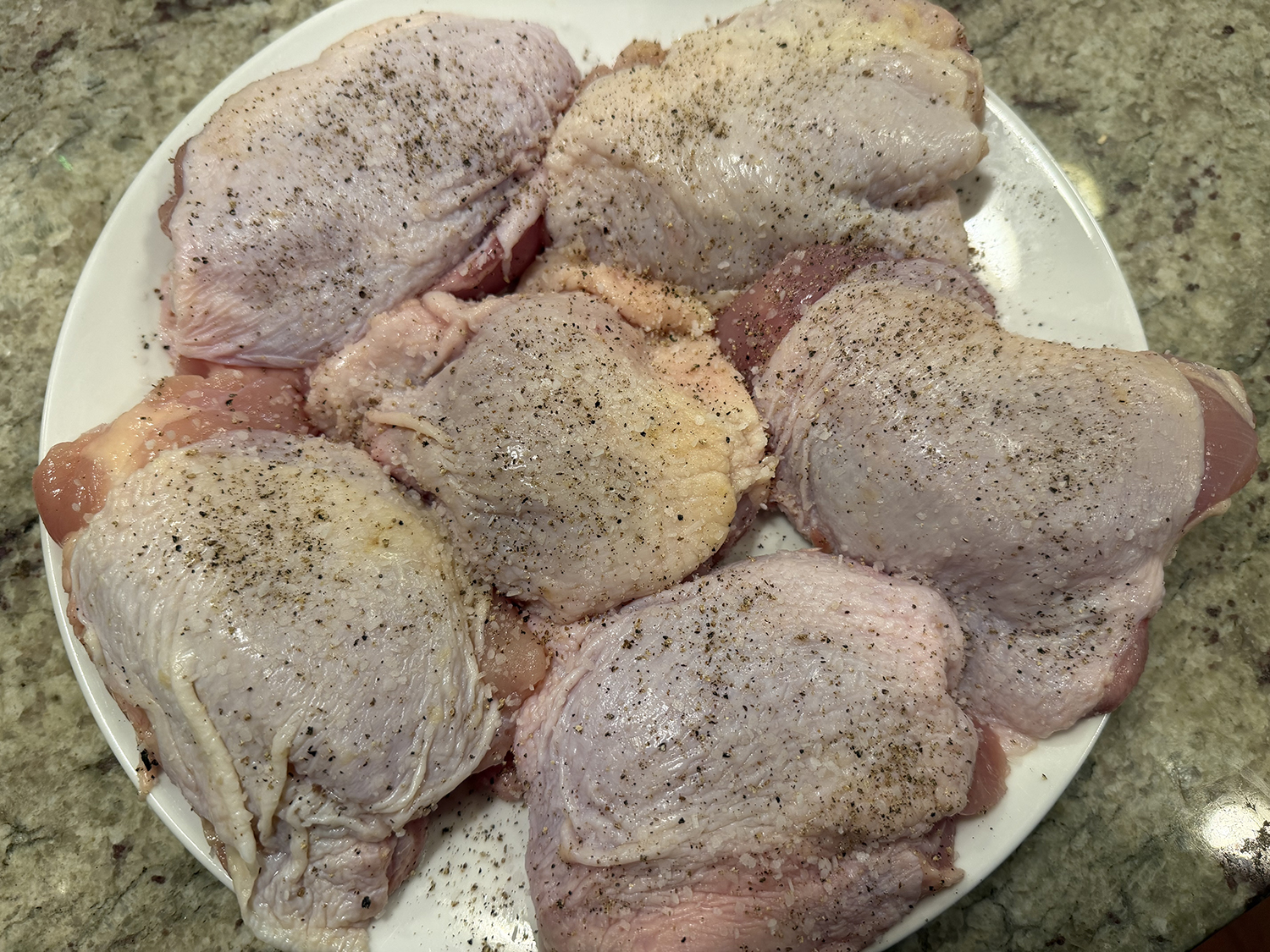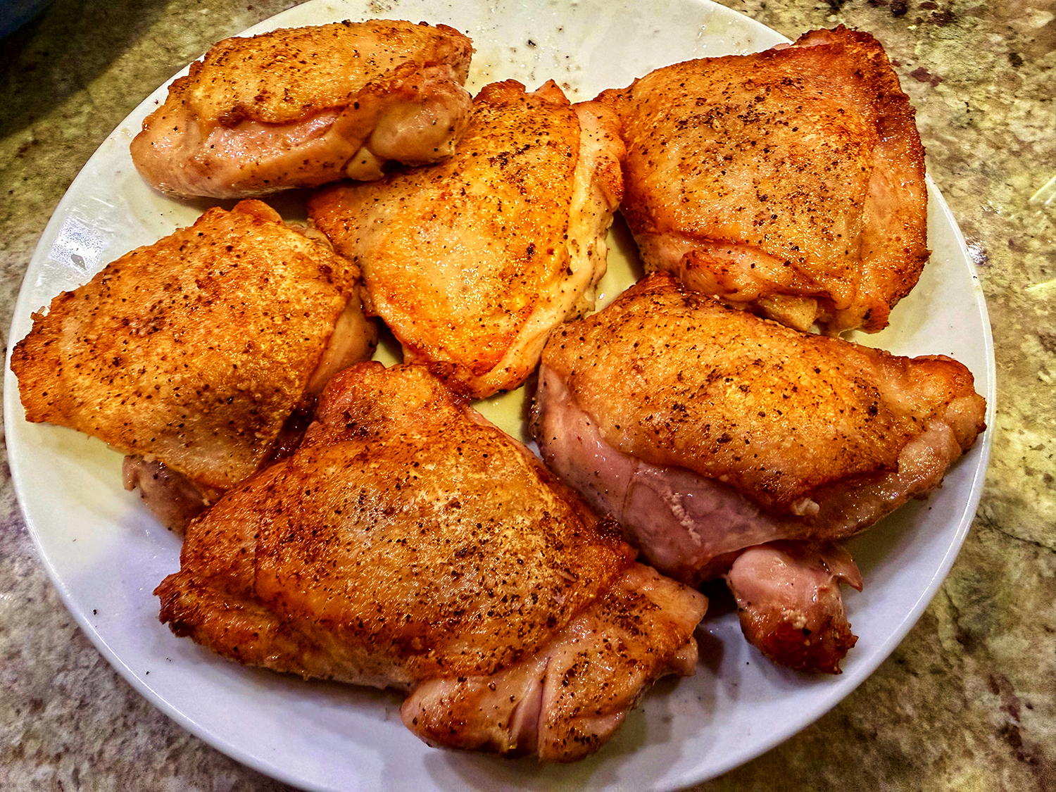 - 6 bone-in, skin-on chicken thighs, trimmed