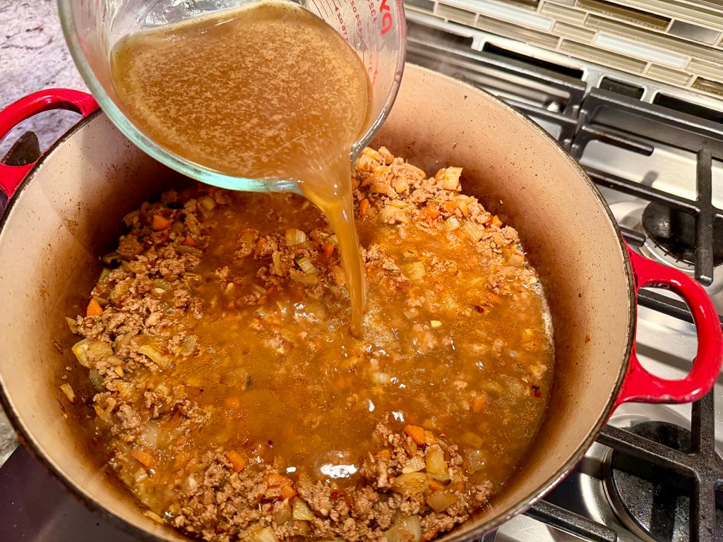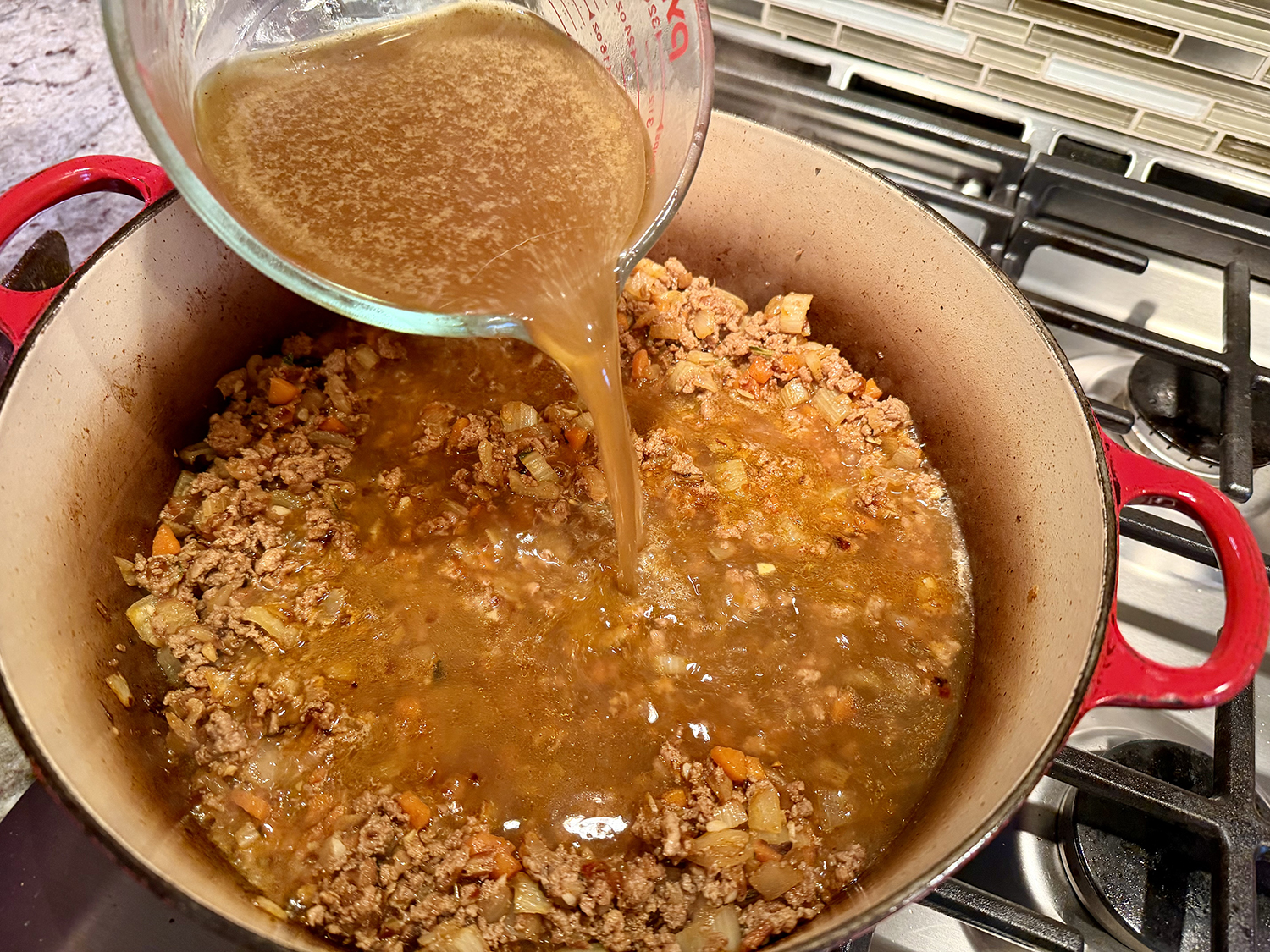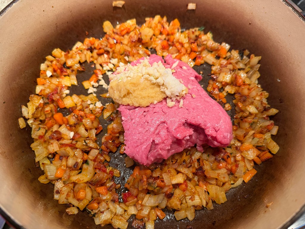 - When the onion is golden, add tomato paste, ¾ teaspoon cumin and ⅛ teaspoon red-pepper flakes to the pot, and sauté until paste darkens, about 1 minute. Add turkey, garlic, ginger and 1 teaspoon salt, and sauté, breaking up the meat with your spoon, until turkey is browned in spots, 4 to 7 minutes.