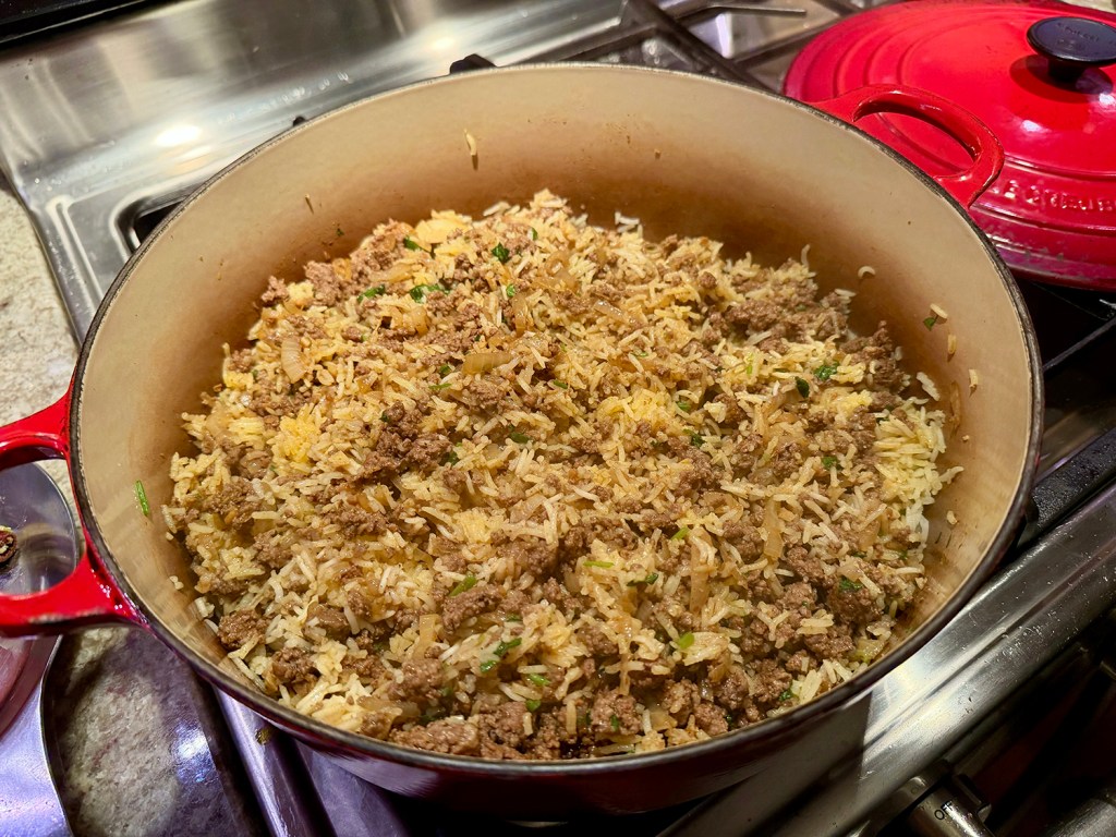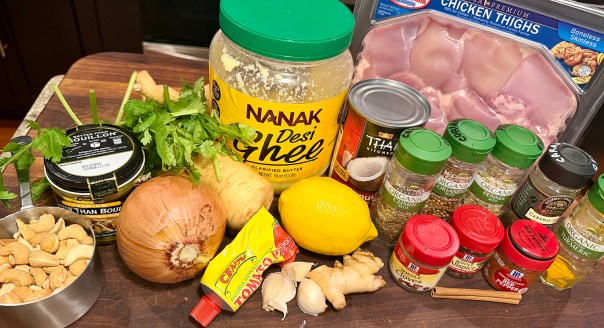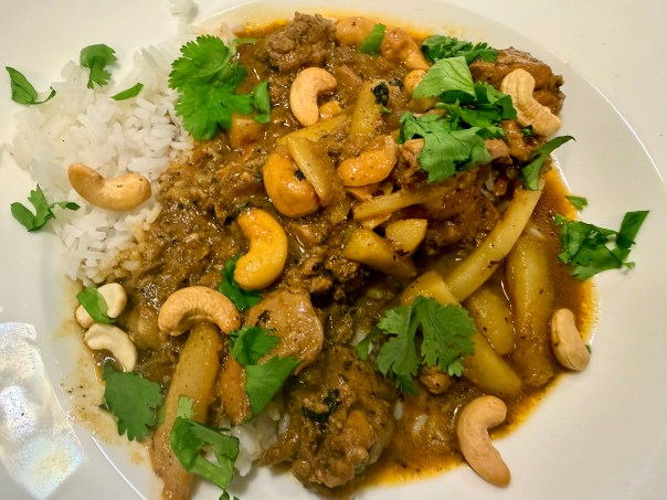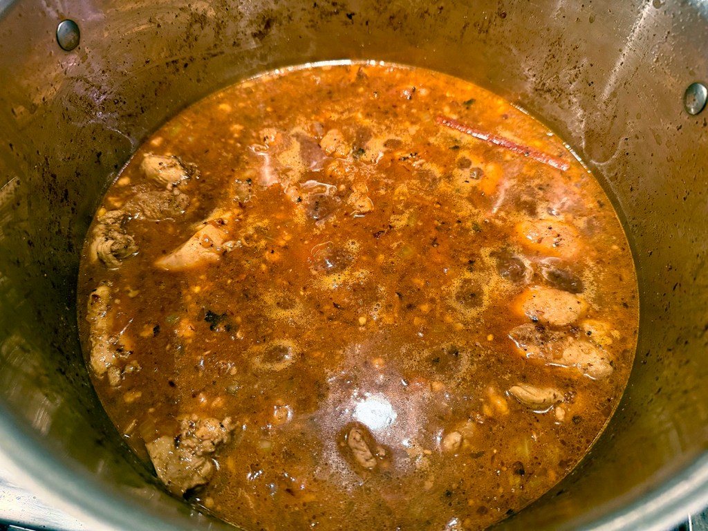The original recipe produces a thin, watery liquid as the base while we prefer a thicker sauce. To accomplish this, you can either dredge the meat chunks in seasoned flour before browning them, and/or add a cornstarch slurry at the end, after degreasing (if necessary), but before adding cilantro.