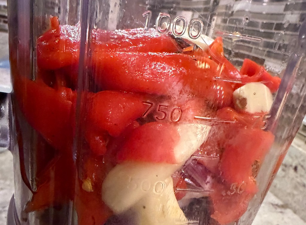 • 2 cups chopped roasted, peeled red peppers (1-inch pieces)