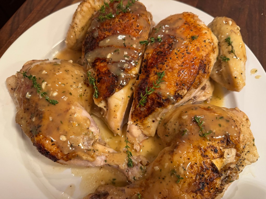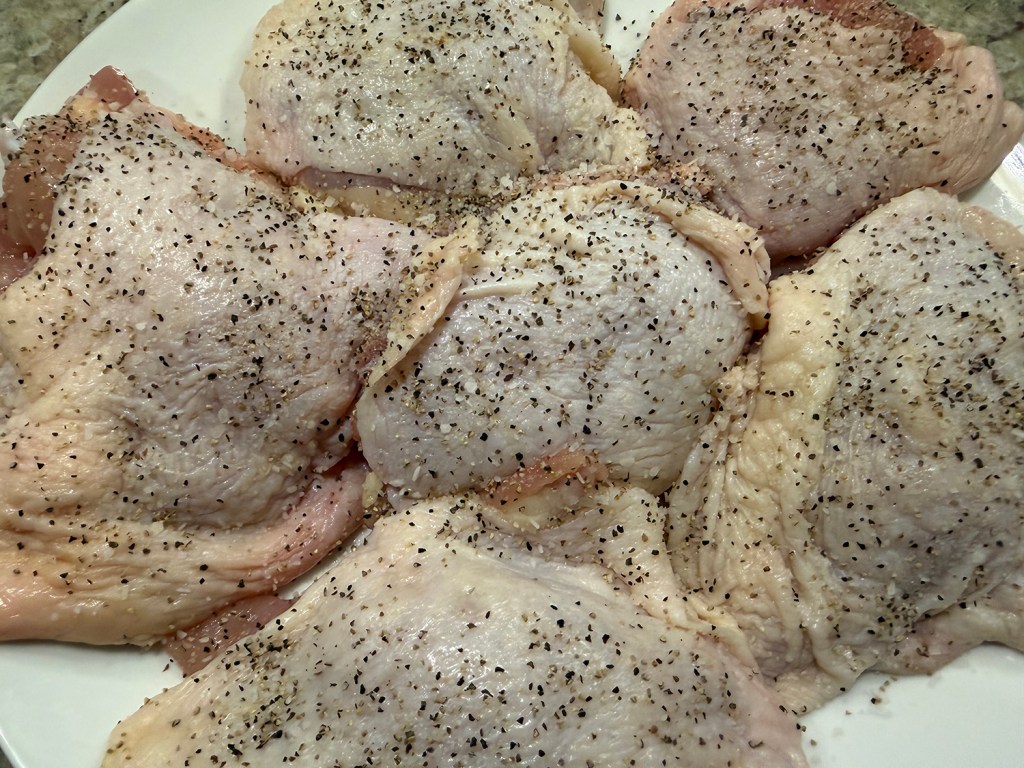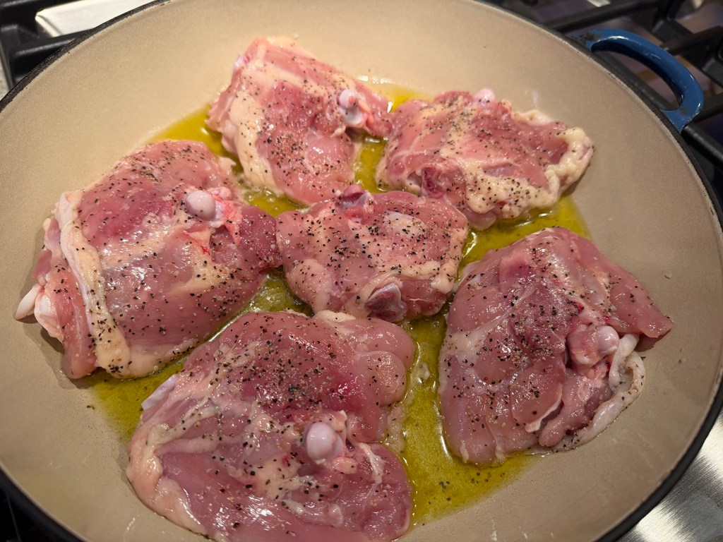 • Skin-on, bone-in chicken thighs (6-8), about 3 lbs.