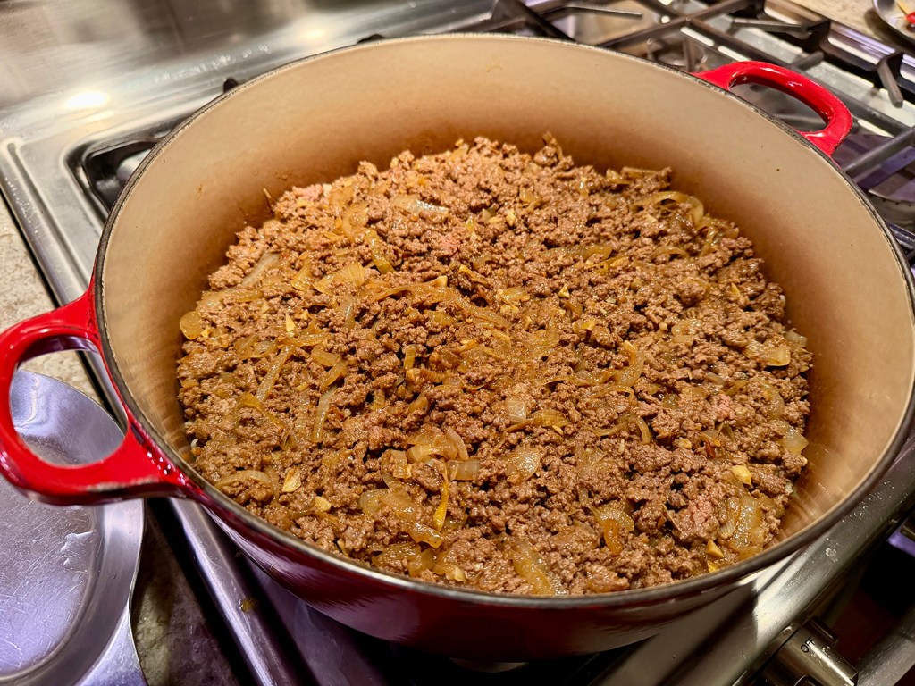 *BTW, a whole bottle (24 oz.) of passata was inadvertently included in our sauce. But in the end it was a happy mistake, because we liked the additional sauce. We used more in the casserole, and leftovers for passing purposes.