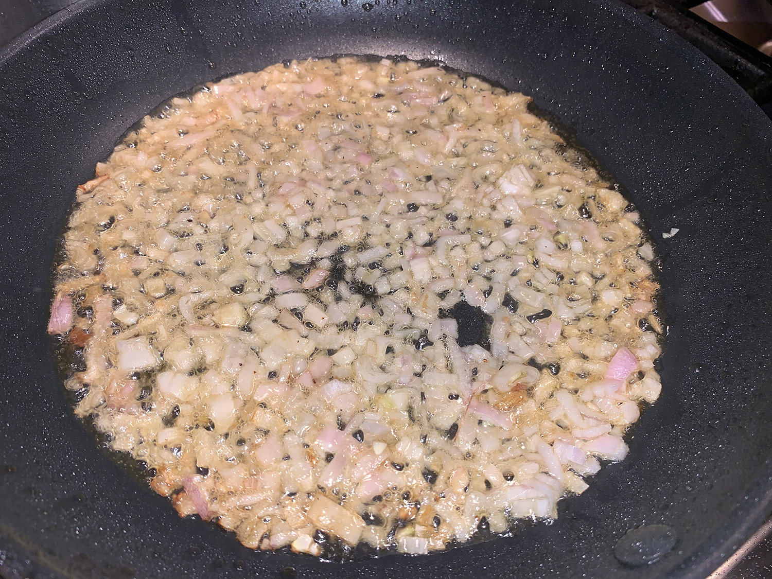 - Add the shallots to the hot skillet and cook, stirring until translucent, about 1 minute.