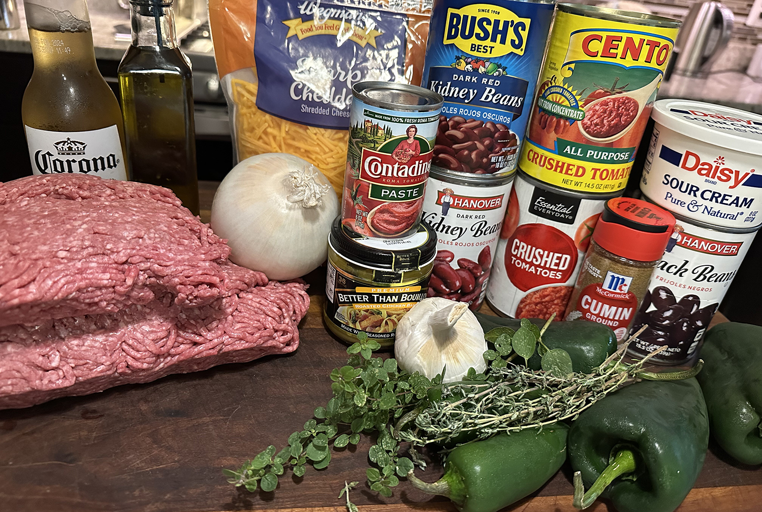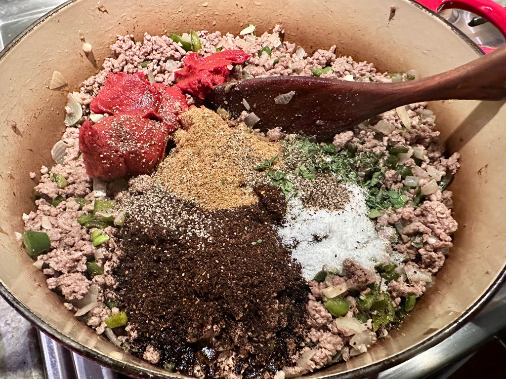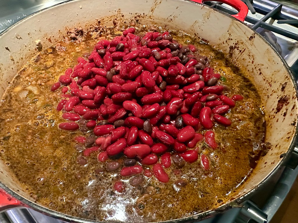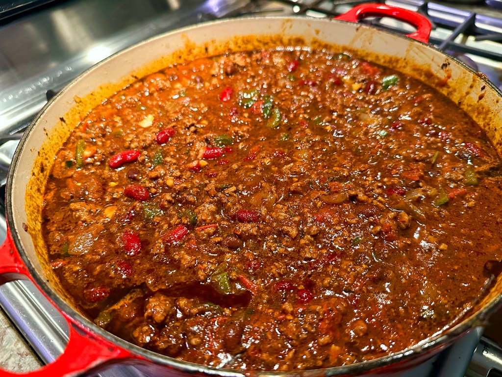 We’ve made more than our fair share of chili recipes over the past few decades—merging all types of ingredients. Beans of every variety, no beans. Cubed beef, ground beef, pork, turkey, chicken—even meatless. White chili, red chili, green chili. All different fresh and dried chiles and spices. Some we loved, others were just meh. A tip from a friend led us to a recent chili recipe in the NYTimes online cooking section and we decided to take a peek at it.