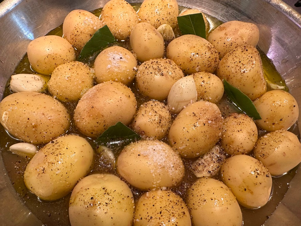 To cut back on knife-work, leave the garlic, zest, and herbs in large pieces and simply add more of them. Melting a generous amount of butter all at once is much faster and easier than emulsifying it piece by piece and results in a rustically elegant sauce. The meat is sliced and served it in the skillet, which keeps the chicken and sauce warm.