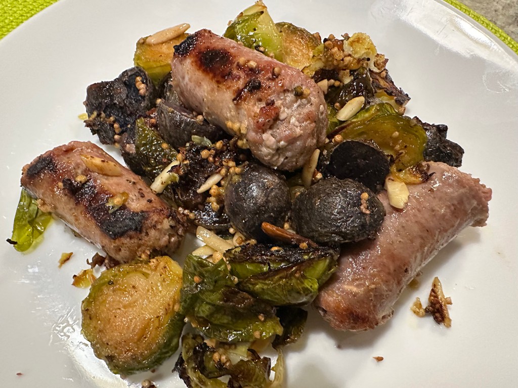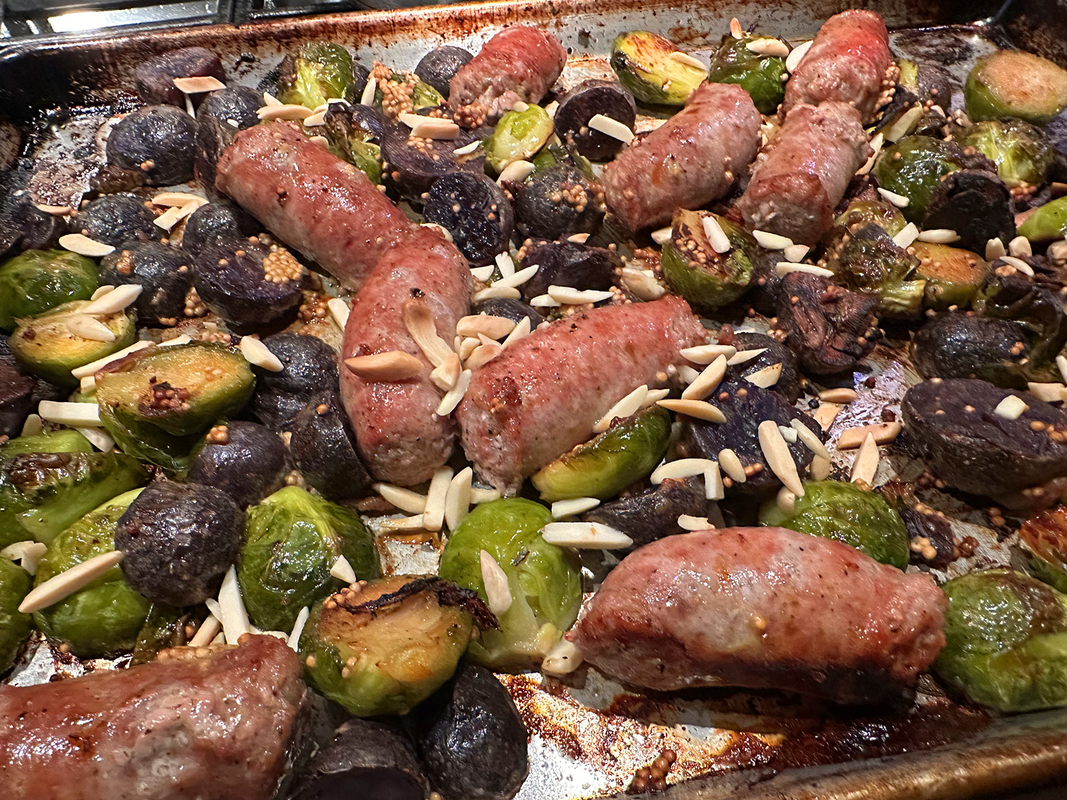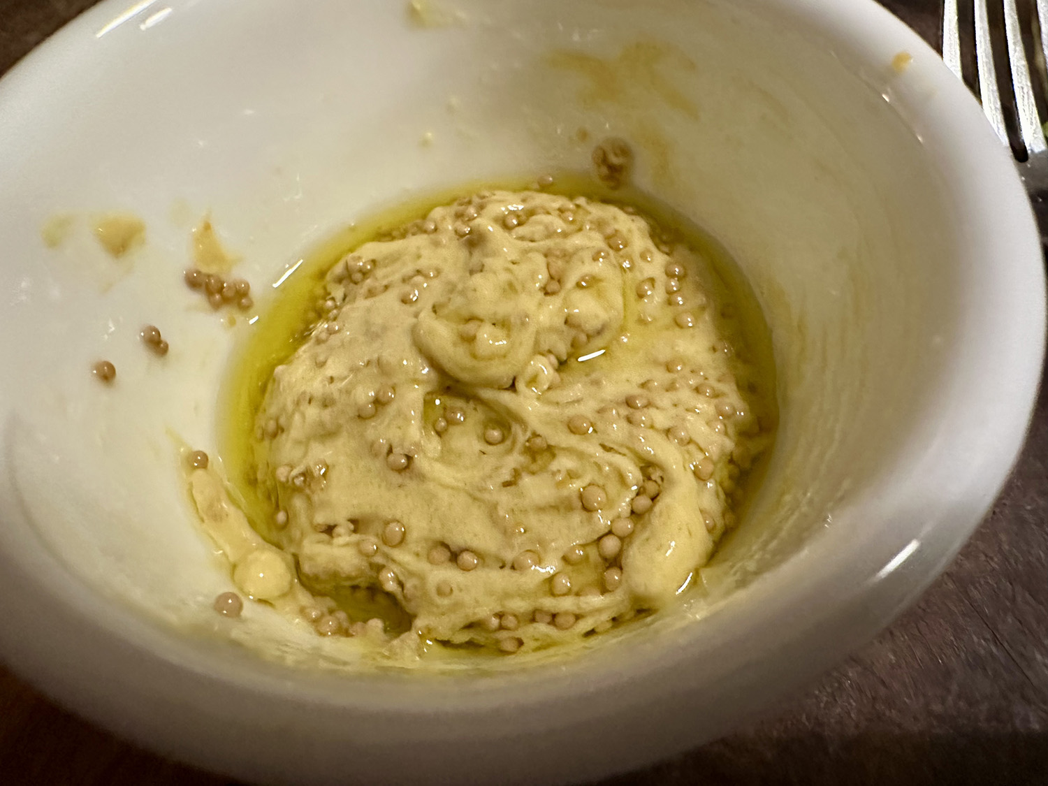 - Stir in ¼ cup orange juice and 1½ tablespoons whole-grain mustard. Off heat, add remaining 2 (3-inch) strips orange zest and 5 sprigs thyme. Season with salt and pepper to taste.
