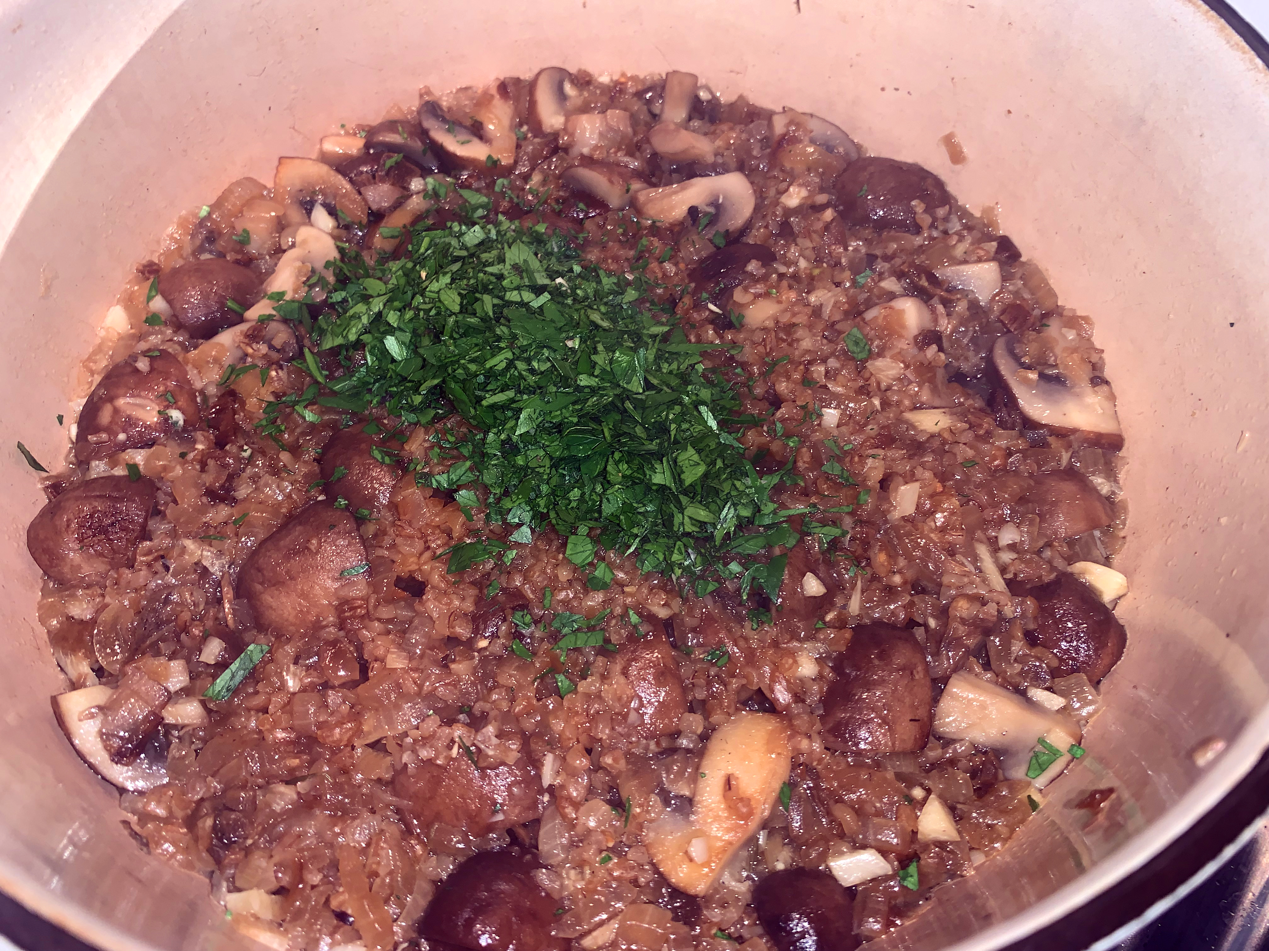 - 8 oz. baby bella mushrooms cleaned, trimmed and sliced