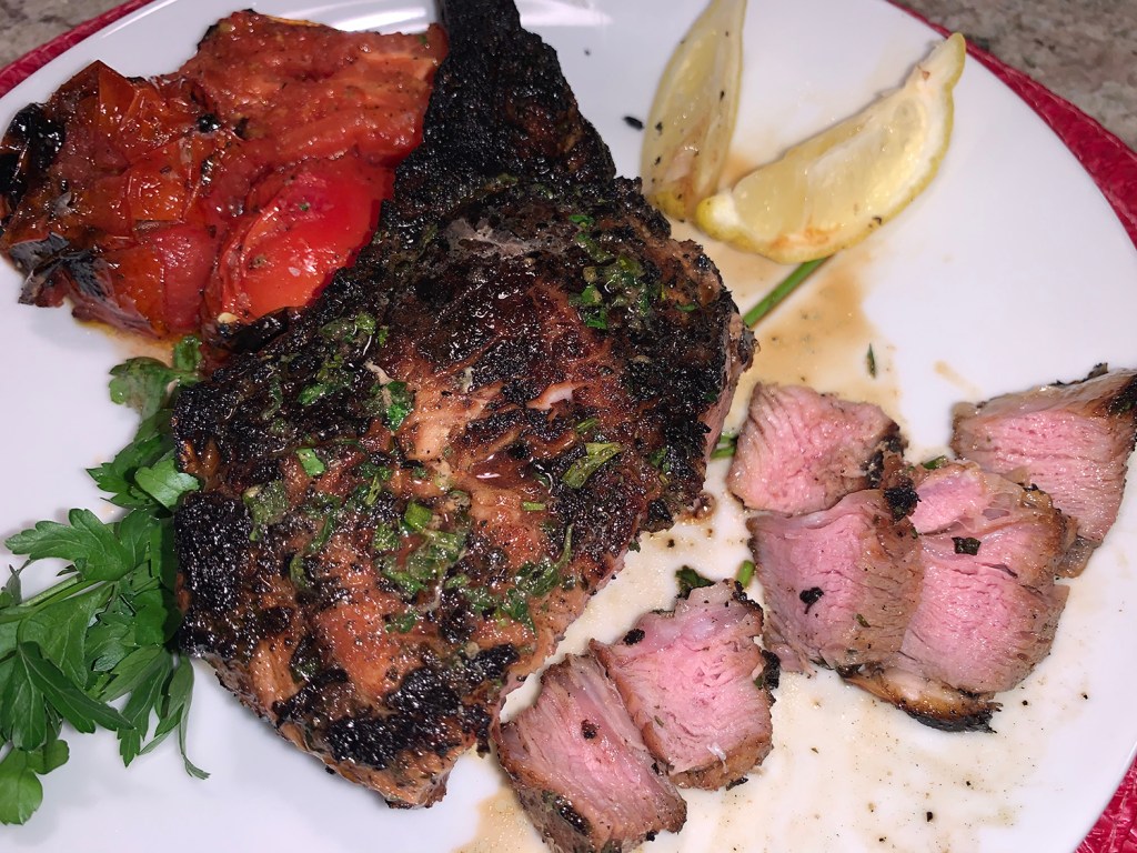 Truth be told, while we’ve done the reverse-sear method on a number of cuts of beef, this was our maiden voyage with lamb. In this case, the recipe called for a 3-4 pound leg of lamb, but ours was nearly 5 pounds so the cooking time was actually 2 hours and 20 minutes. We used an internal thermometer to measure the temperature the entire time it was roasting.