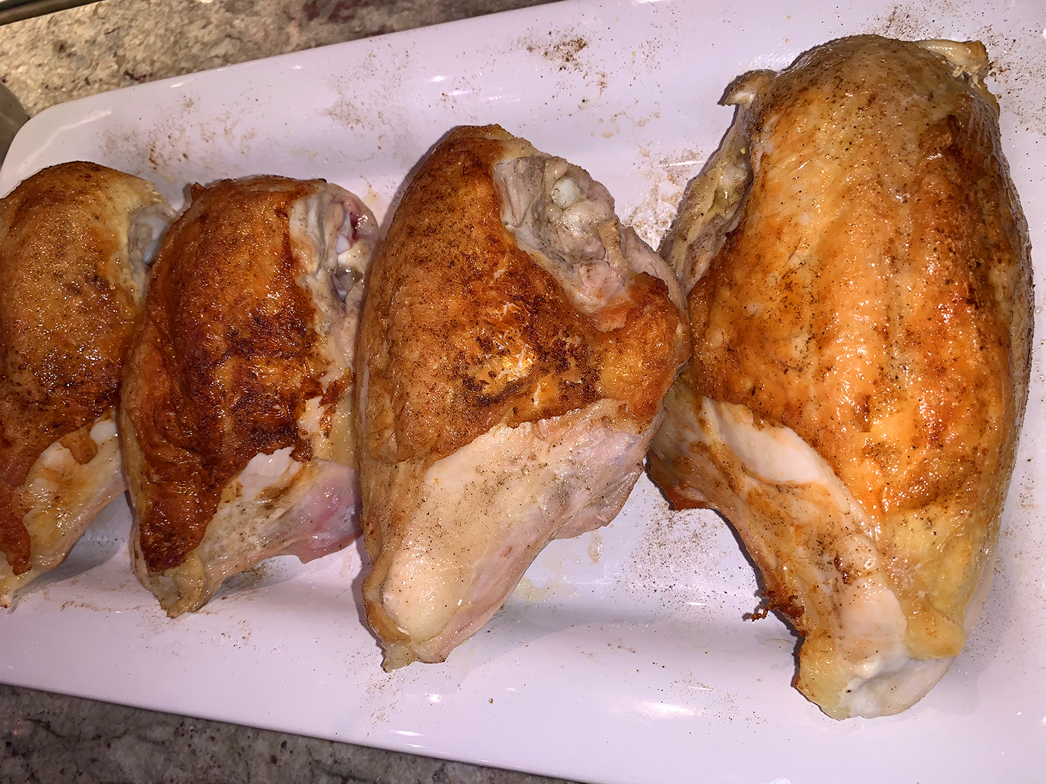 - 4 12-oz. bone-in, skin-on chicken breasts, trimmed of excess fat