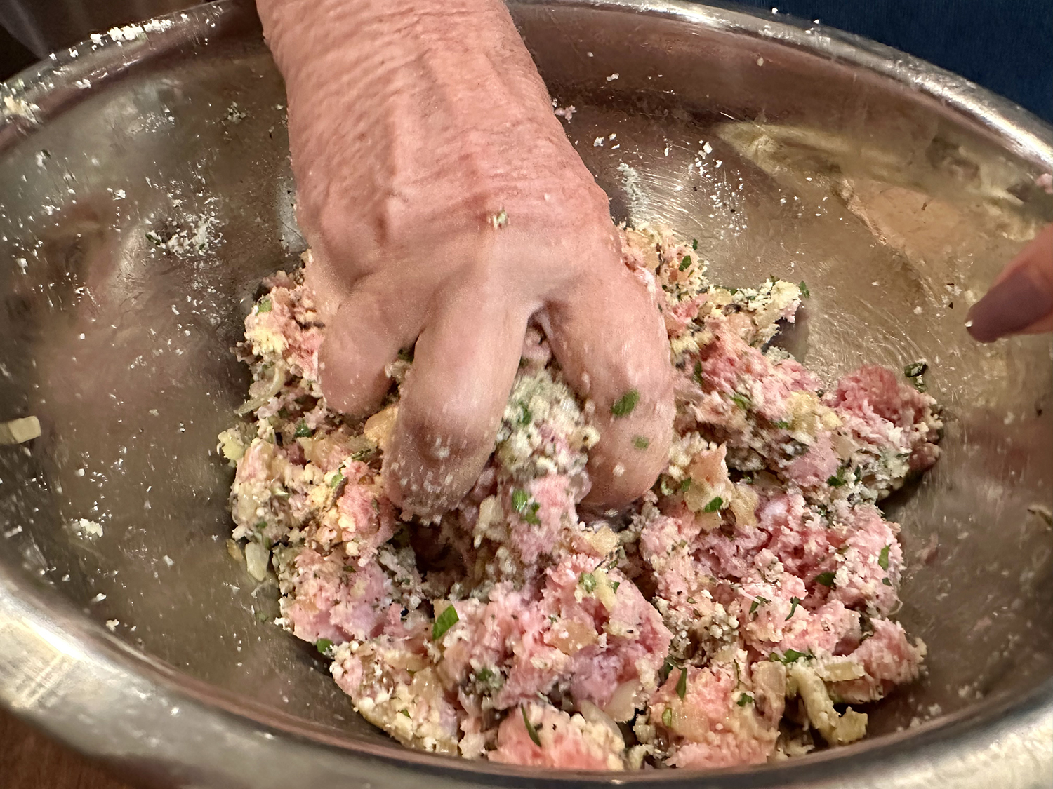 - Place 1 large egg, beaten to blend, 1 garlic clove, finely grated, 1 lb. ground lamb, 1 cup panko, ½ tsp. smoked paprika, ¼ tsp. ground cinnamon, 3 Tbsp. extra-virgin olive oil, 1 tsp. cumin, 1 tsp. Diamond Crystal or ½ tsp. Morton kosher salt, and 1 Tbsp. water in a large bowl. Using your hands, gently mix until combined, then break into golf-ball-size pieces and roll into balls.