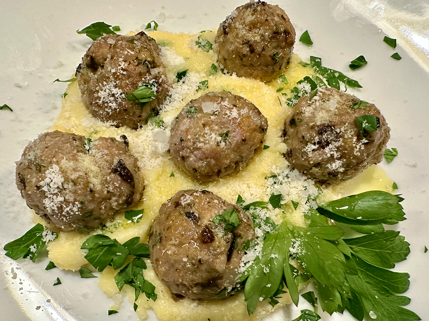 You’ll get about 30 meatballs, so the dish could possible feed a fifth diner.