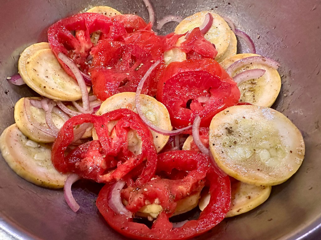 NOTES: Don’t use regular bell peppers. Mini sweet peppers are more delicate, so they soften more readily, and their skins are more tender.