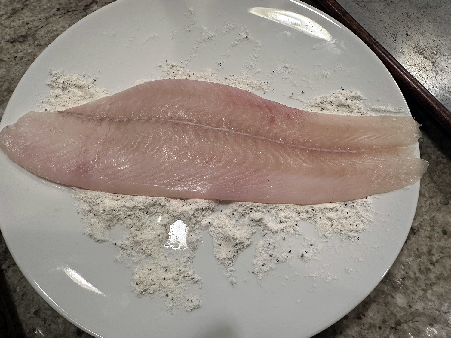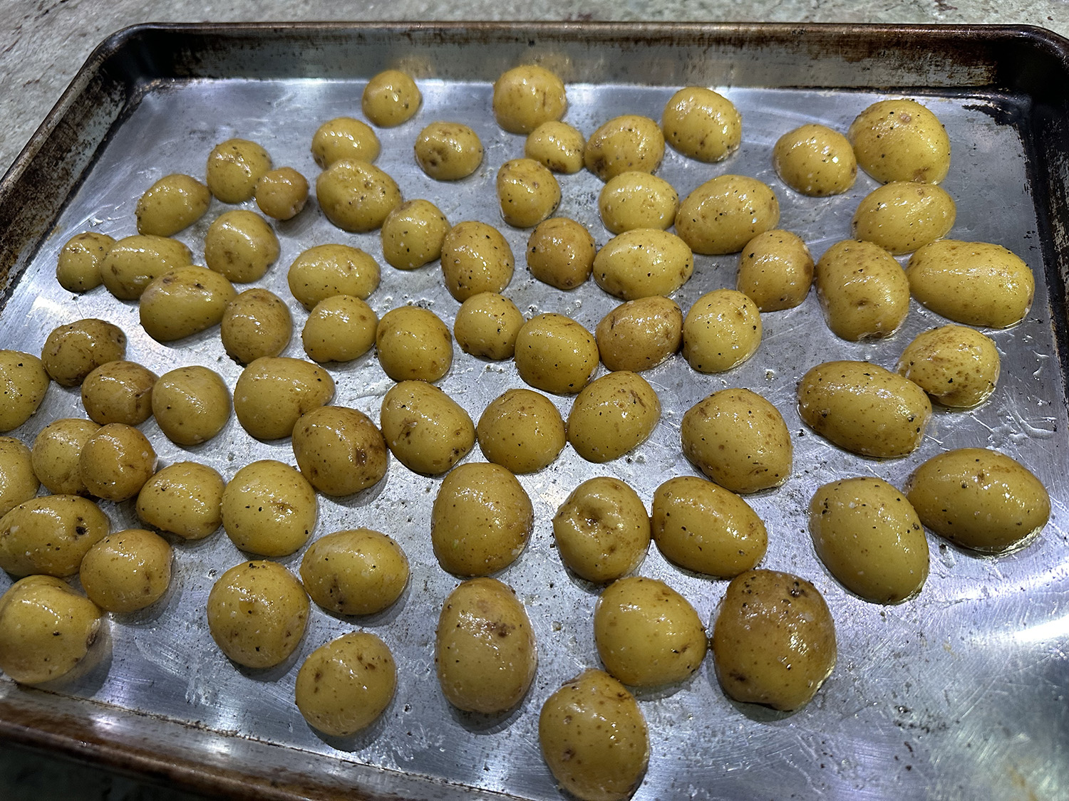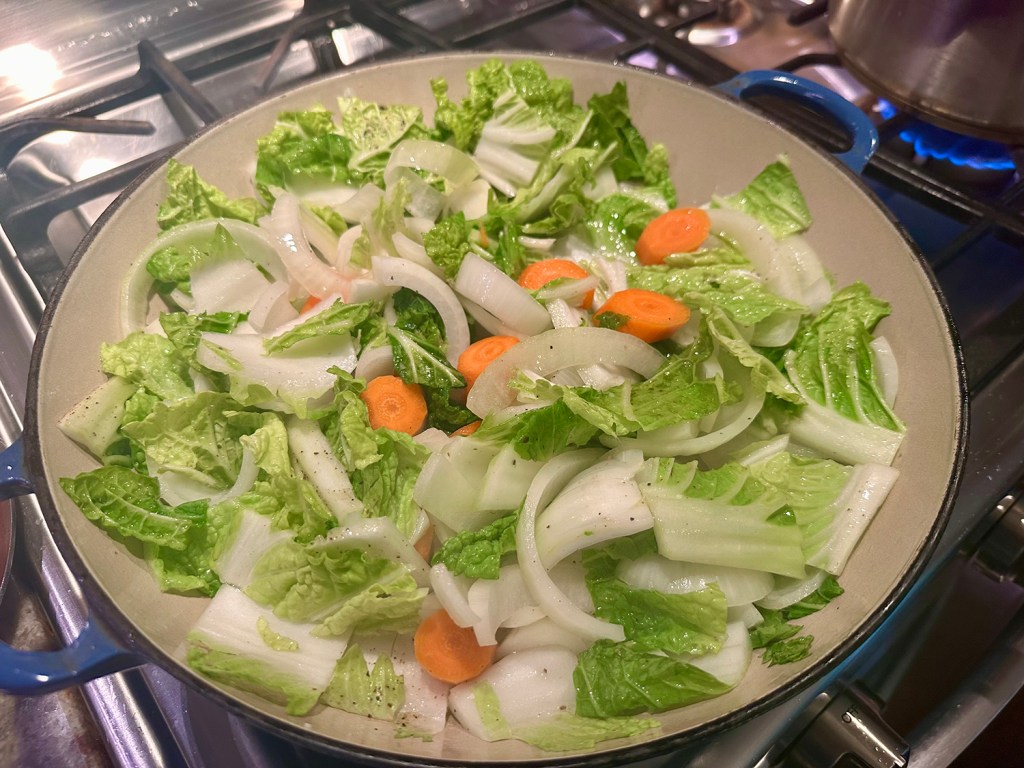 Our changes included slicing a 24-ounce slab of salmon into three 8-ounce portions. We also increased the amount of green beans from 8 ounces to 12 ounces (but then forgot to slice them into 2-inch pieces 😏).