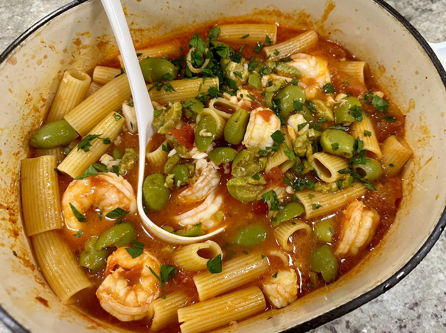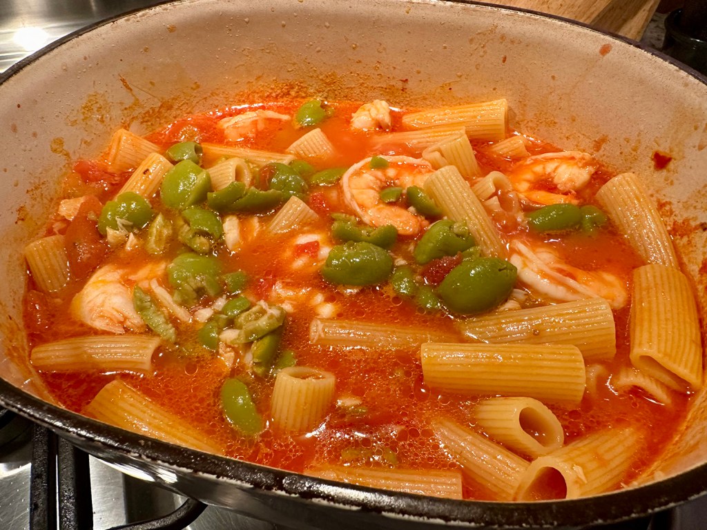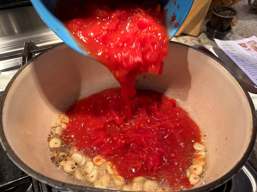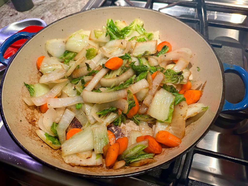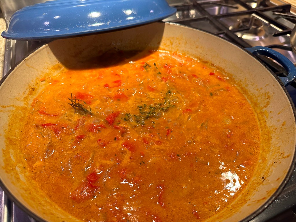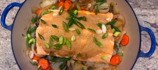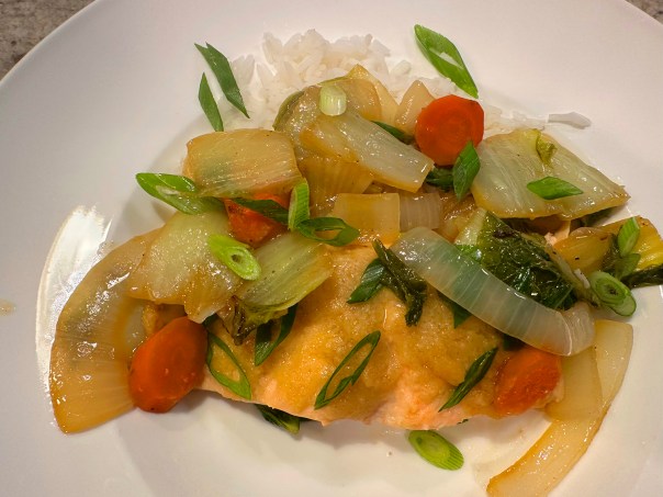 Crisp-skinned salmon is the star protein here and simmers alongside green beans in the sauce, which is balanced, rich and tasty with anchovies and miso. According to NY Times Cooking, a sauce this good works with any protein that benefits from a gentle simmer. It was spot-on with the salmon!