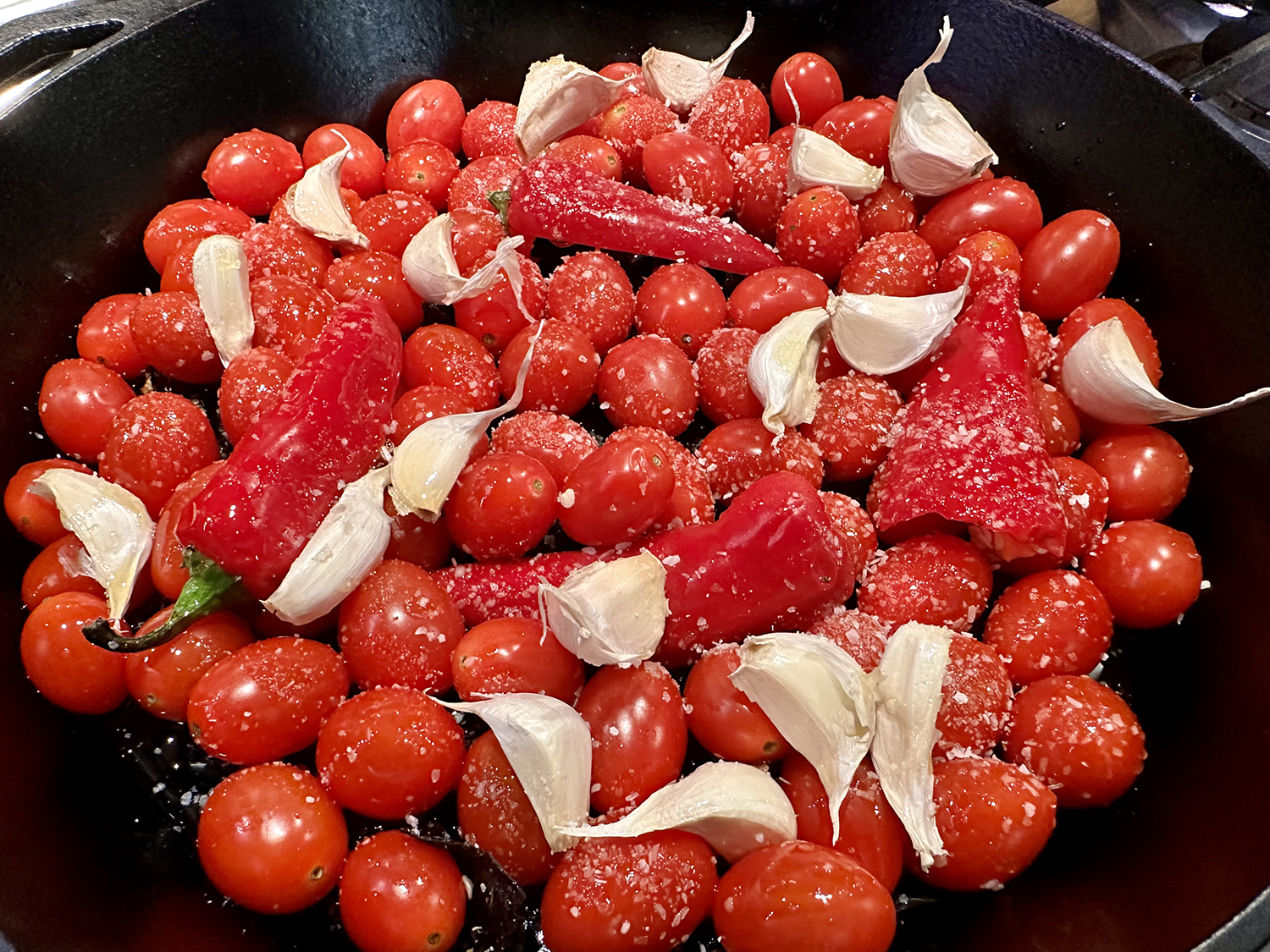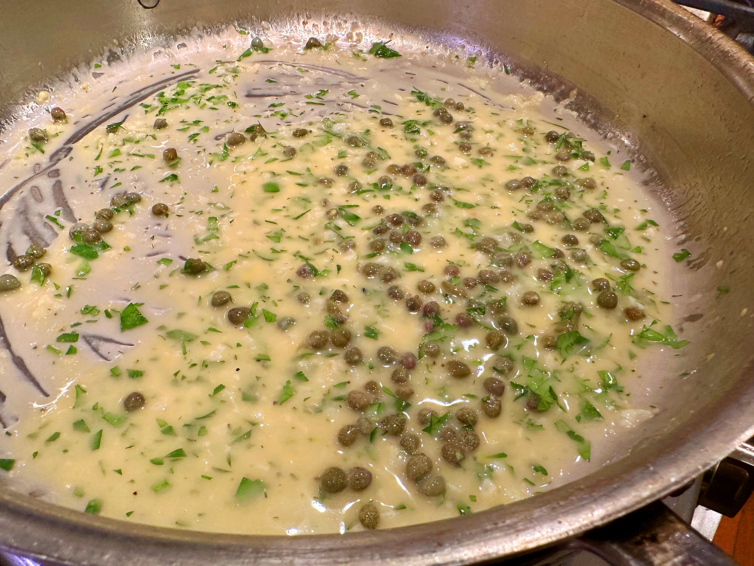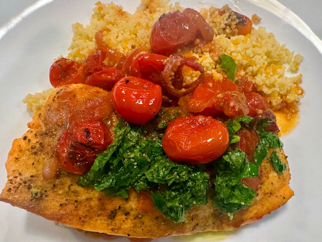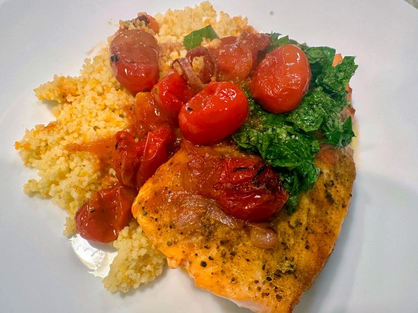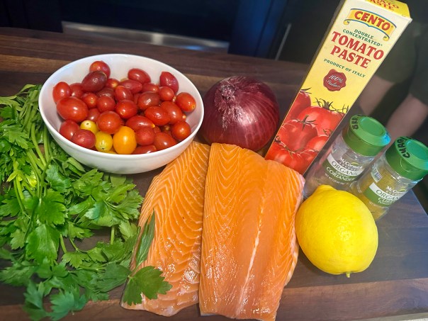 We are quite fond of salmon and enjoy the fish often, both at home and while dining out. The Hubs adores anchovies (in any form), yet I tend to be a bit more timid about them. In this dish, they literally dissolve into the sauce. If there is an anti-anchovy militant in your household, don’t even mention they are part of the recipe.