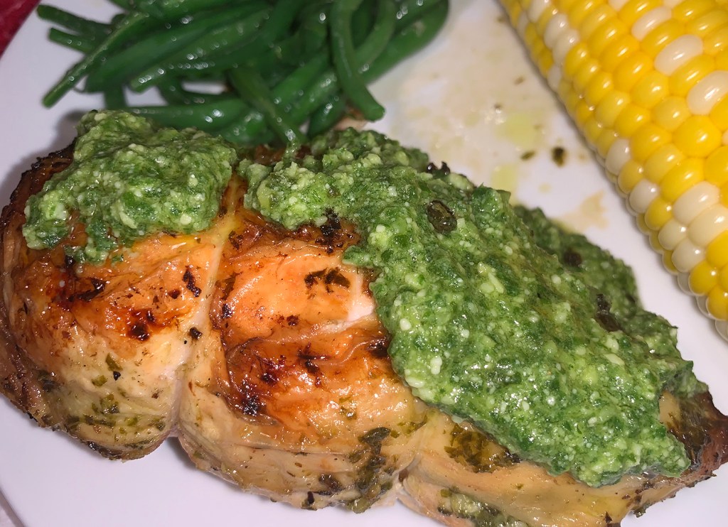 Pan-Seared Salmon with Citrus Pesto and Pasta