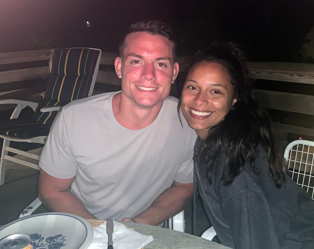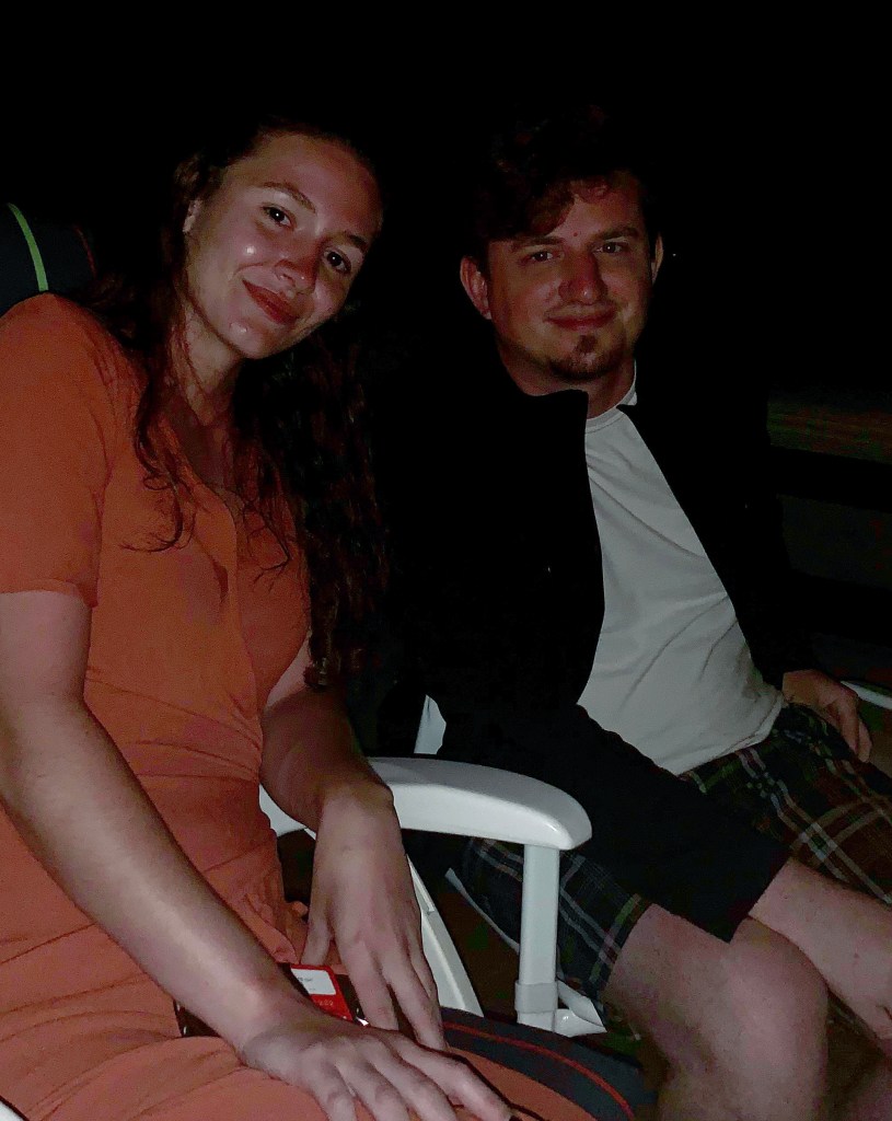 Son Dan and girlfriend Tina patiently wait for dinner.