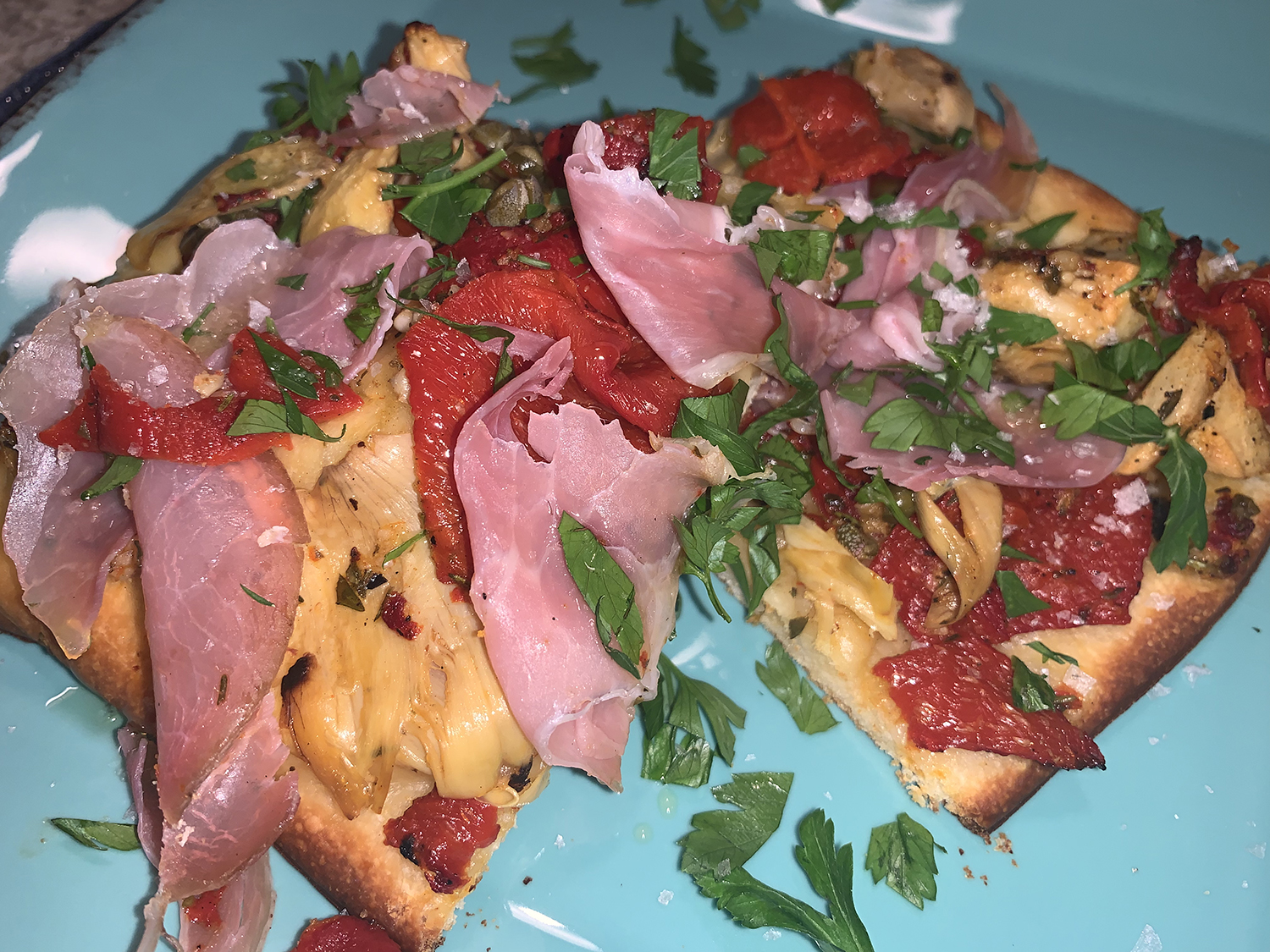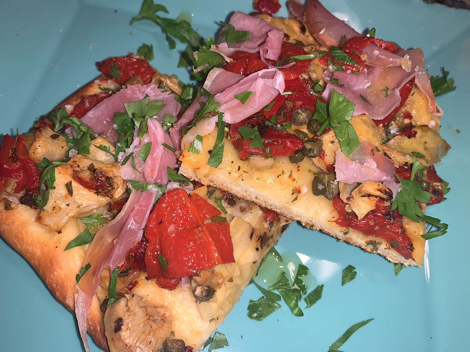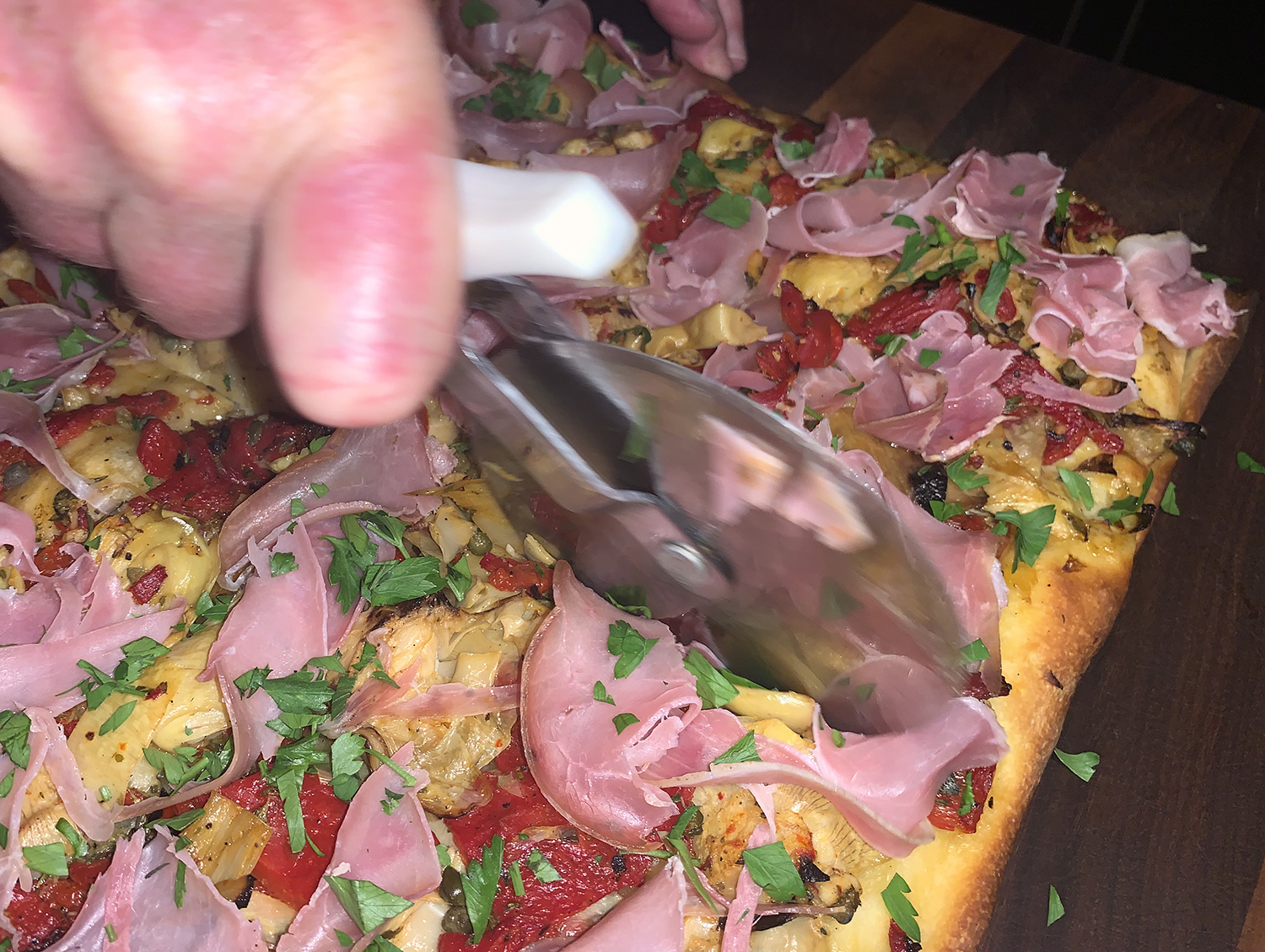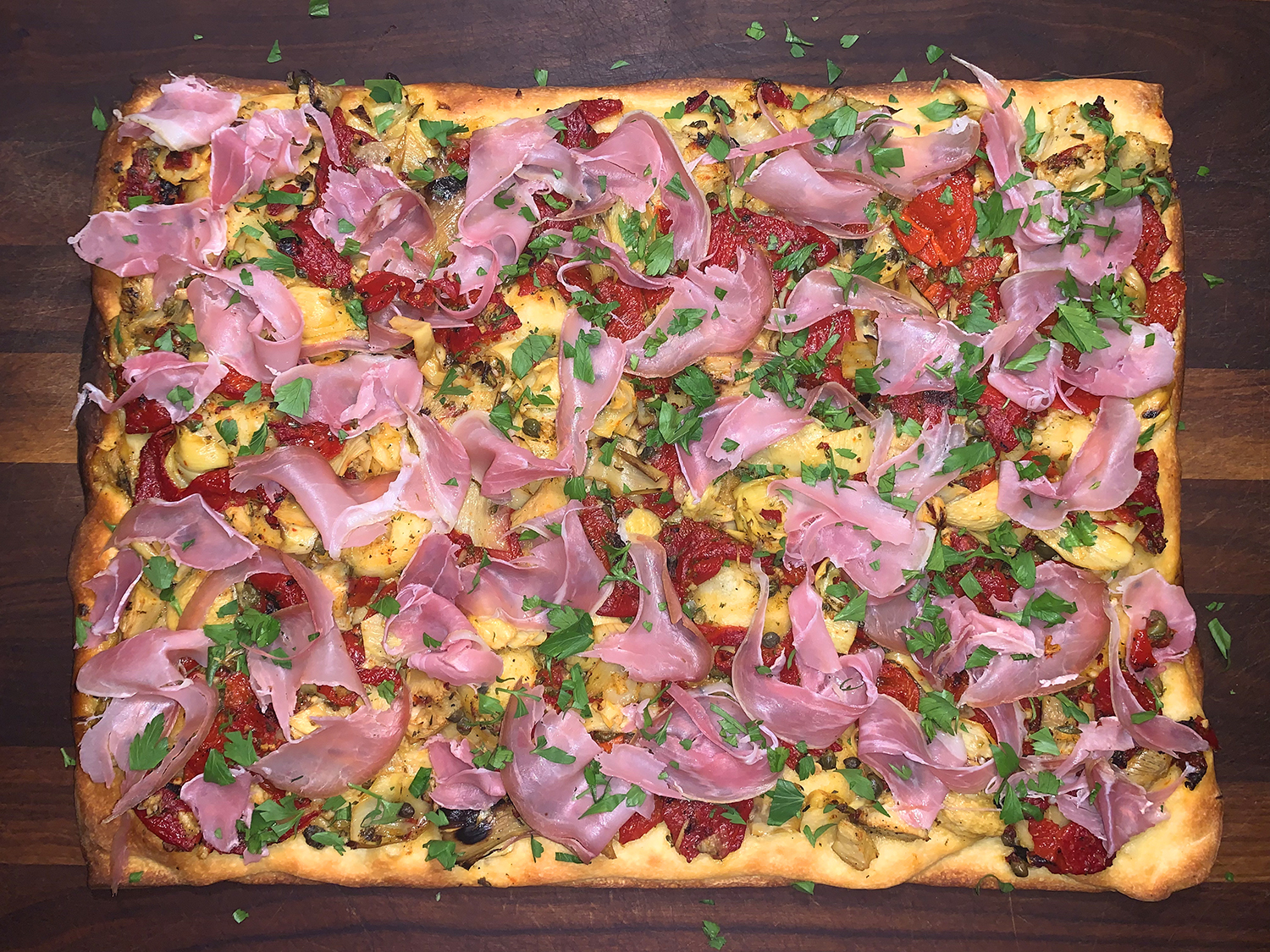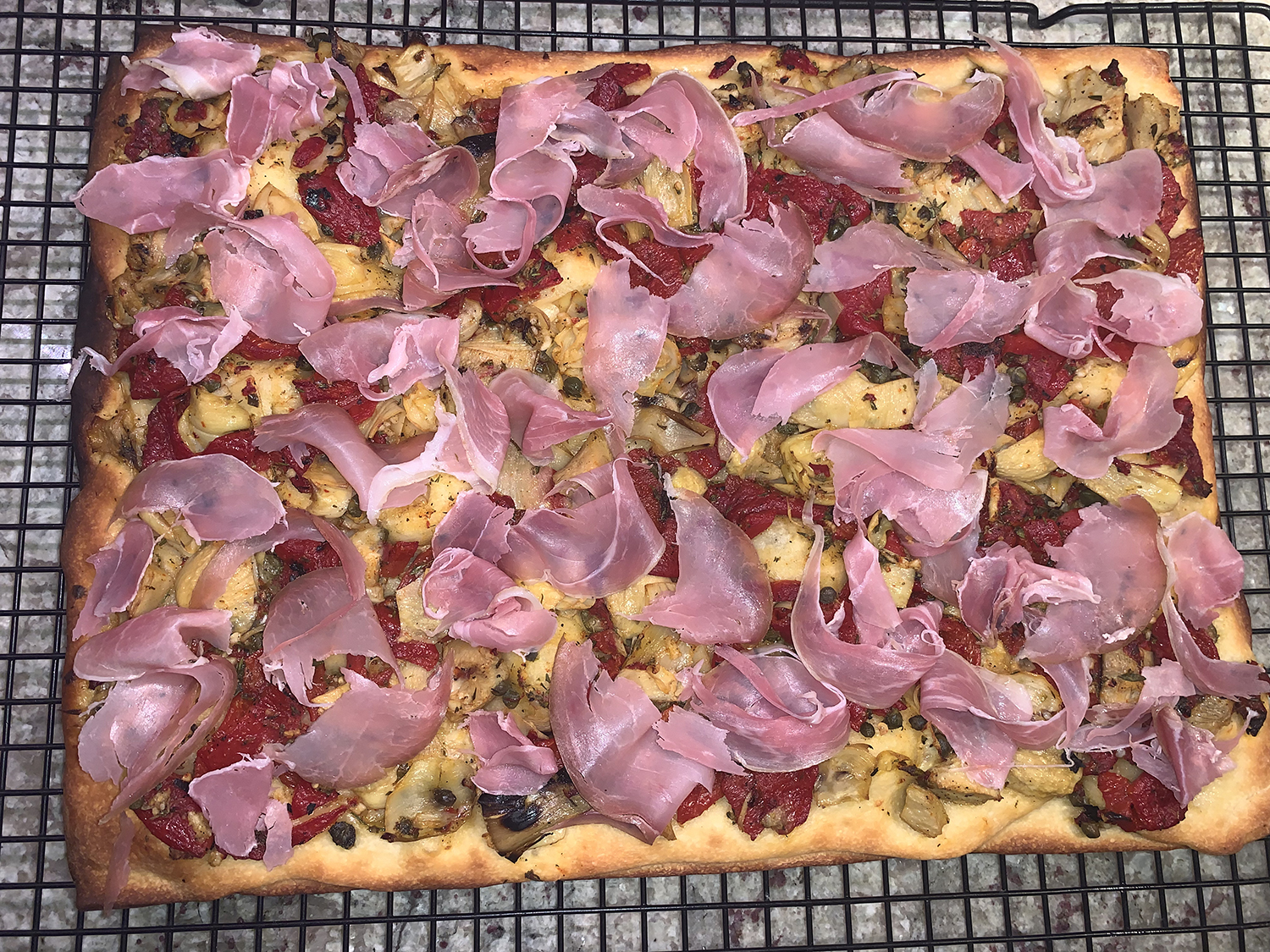 The wrapping process is a bit tricky, so keep your patience and perhaps buy a few extra slices of prosciutto. If you don’t need to use the extras, they make a mighty fine nibble. Since there was just two of us for dinner, we halved the recipe and still had leftovers.