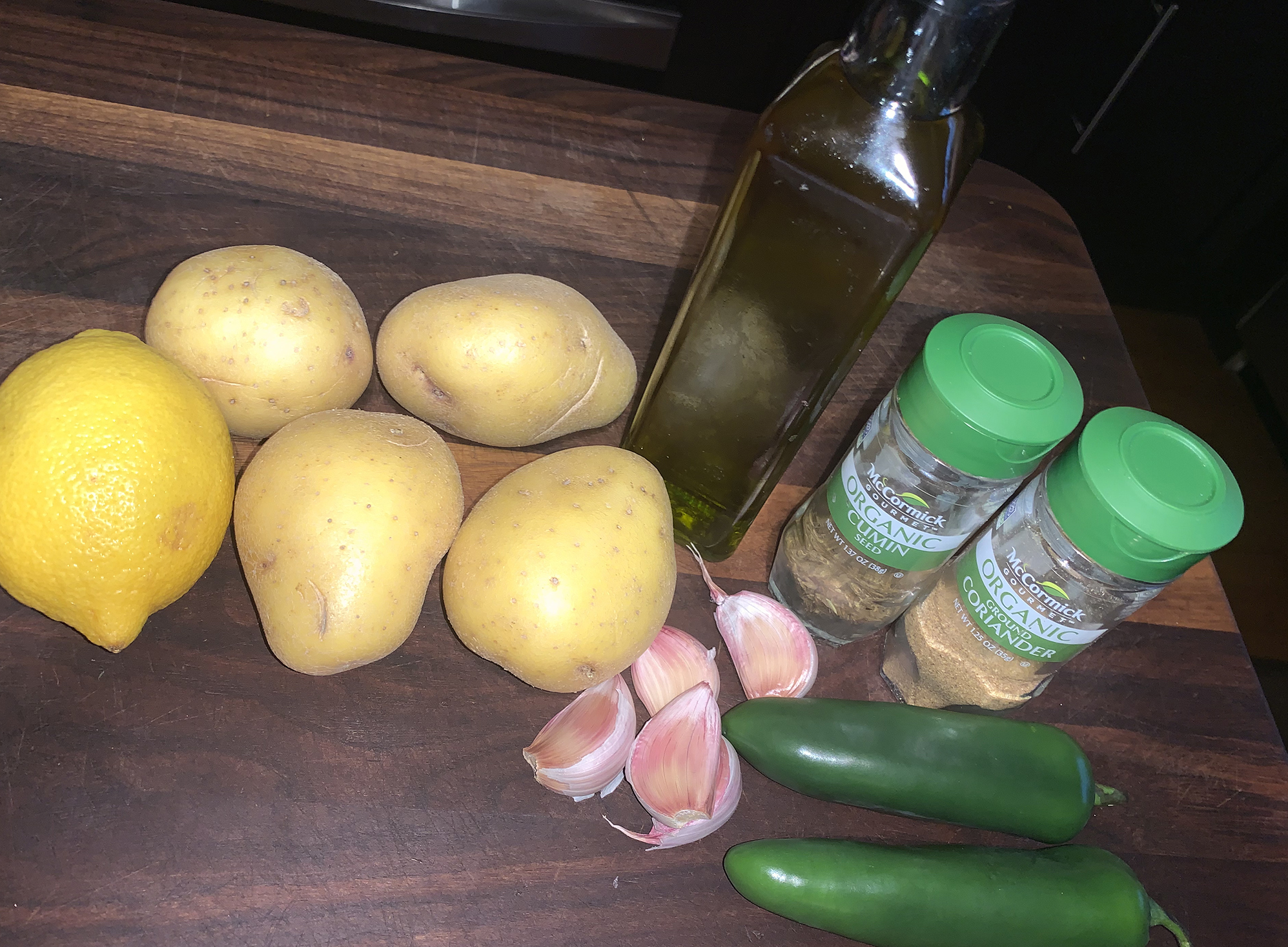 - 1½ lbs. fingerling potatoes, mixture of yellow, red, and blue, if possible