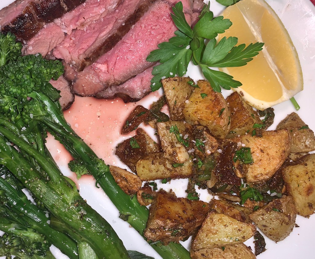 Potatoes are one of my favorite sides, no matter how they are cooked. And, this recipe is one I’ve never tried before, but will be sure to make again. Paired with a sirloin steak that marinaded in a sauce also containing fresh tarragon, they made great dinner companions.