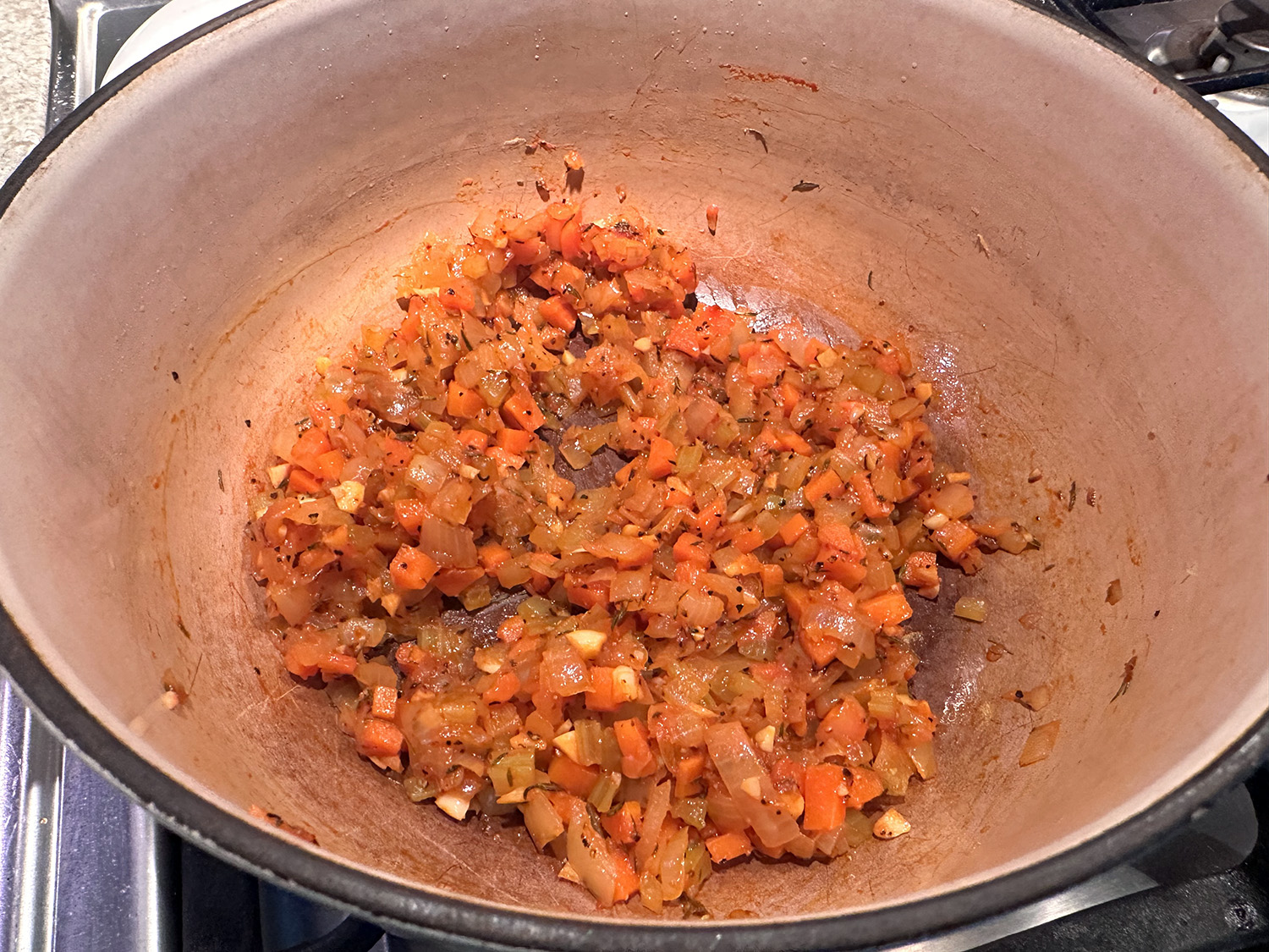 - Reduce heat to medium, pour the red pepper sauce into the skillet. Stir in ½ cup water and the remaining 2 tablespoons oil. Simmer the sauce, stirring frequently until slightly reduced and the liquid and oil collect toward the center of the skillet, 5 to 6 minutes. Taste for seasoning and adjust with additional salt and pepper if necessary.