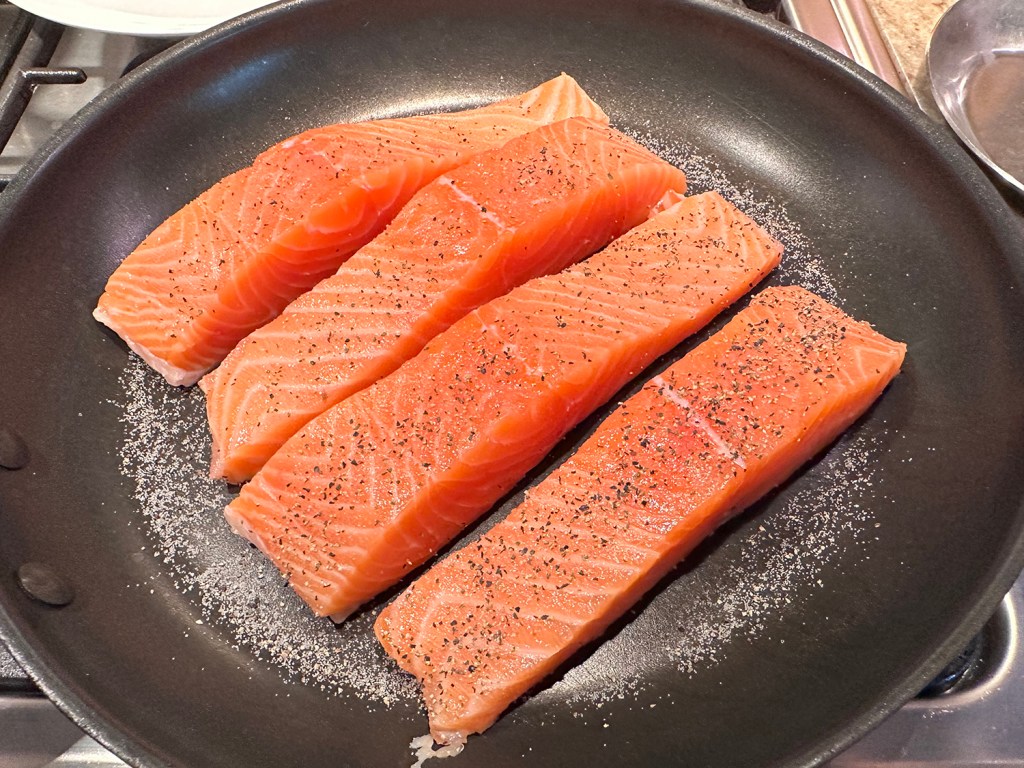 - 4 salmon fillets (about 6 oz. each), skin on or off