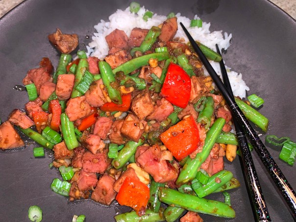 On another note, even though it was a truly delicious dish, our preference lies toward saucy when it comes to stir-fries, and this was decidedly not. So if you prefer a more saucy finish, just double the liquids (wine though vinegar).