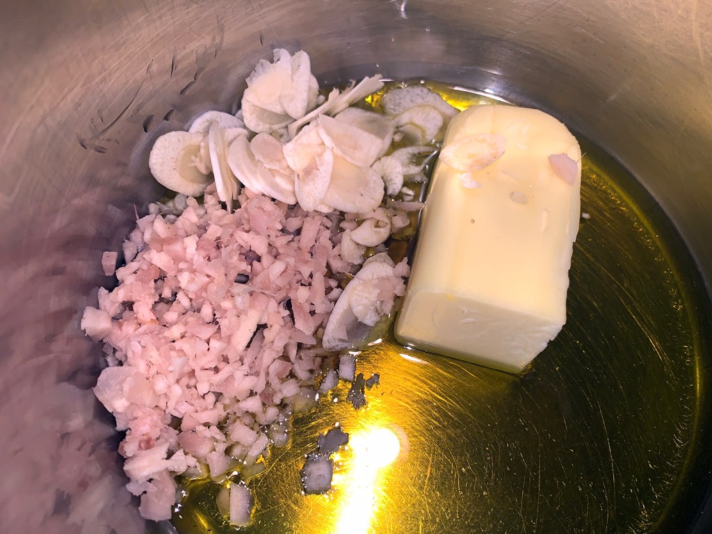 - 5 cloves garlic (smashed and cut in half)