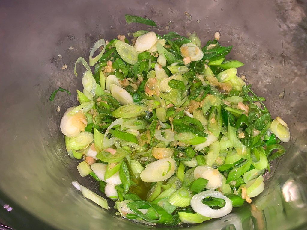 While The Hubs likes pork belly, The Missus does not, so we compromised and used a small pork loin. We had a half head of cabbage on hand weighing about 50% less than called for, so we doubled the number of scallions from 2 to 4. The recipe says it feeds 4, well the two of us almost polished it off; therefore more realistically serves 2 to 3 people.