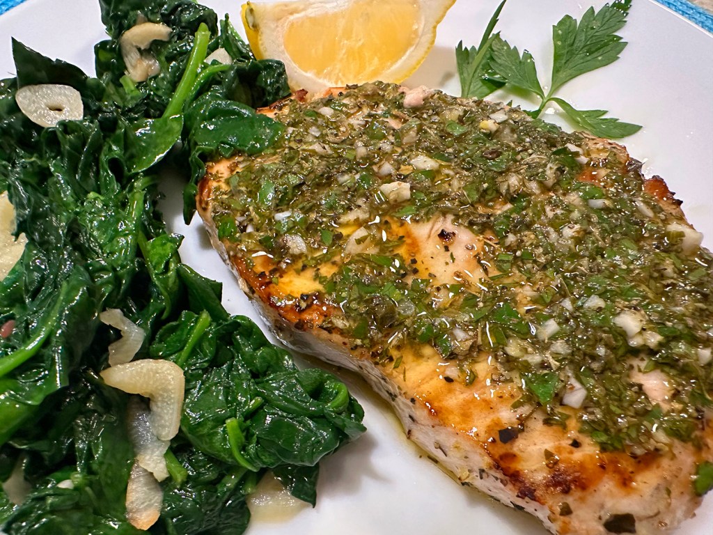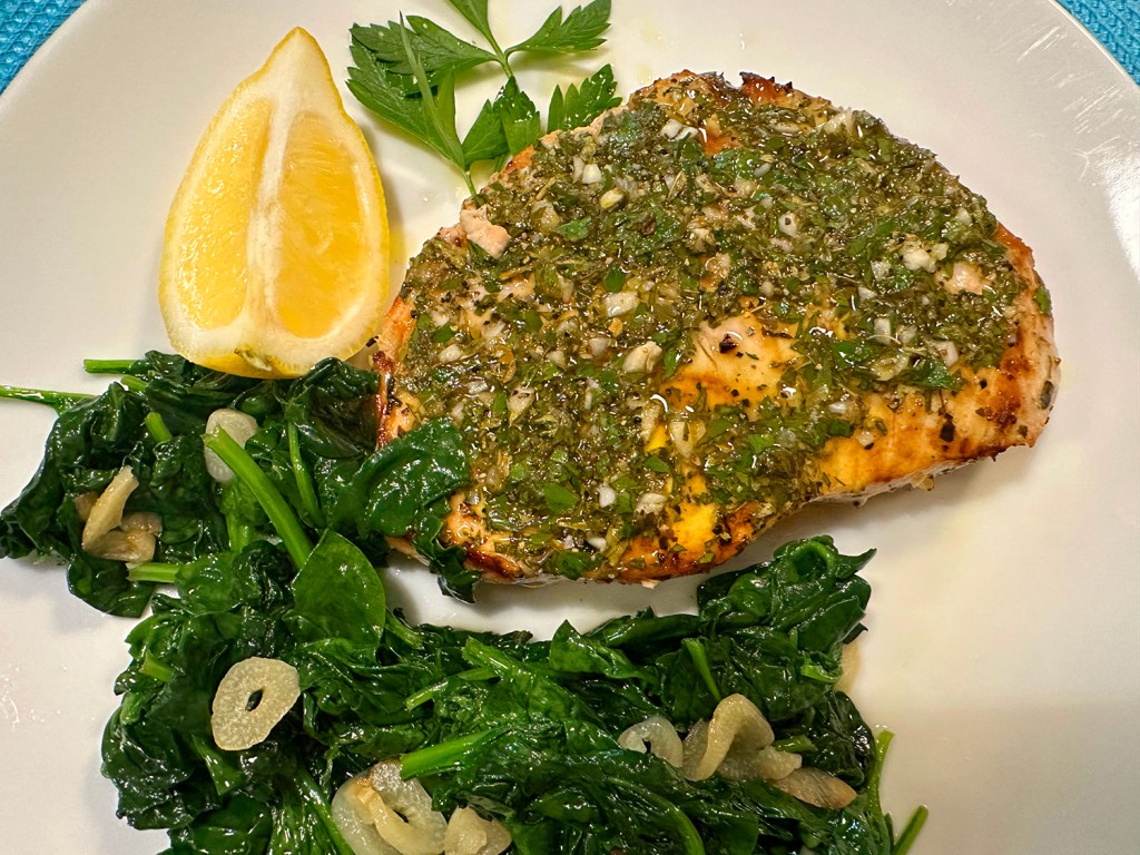 Pan-Seared Salmon with Citrus Pesto and Pasta