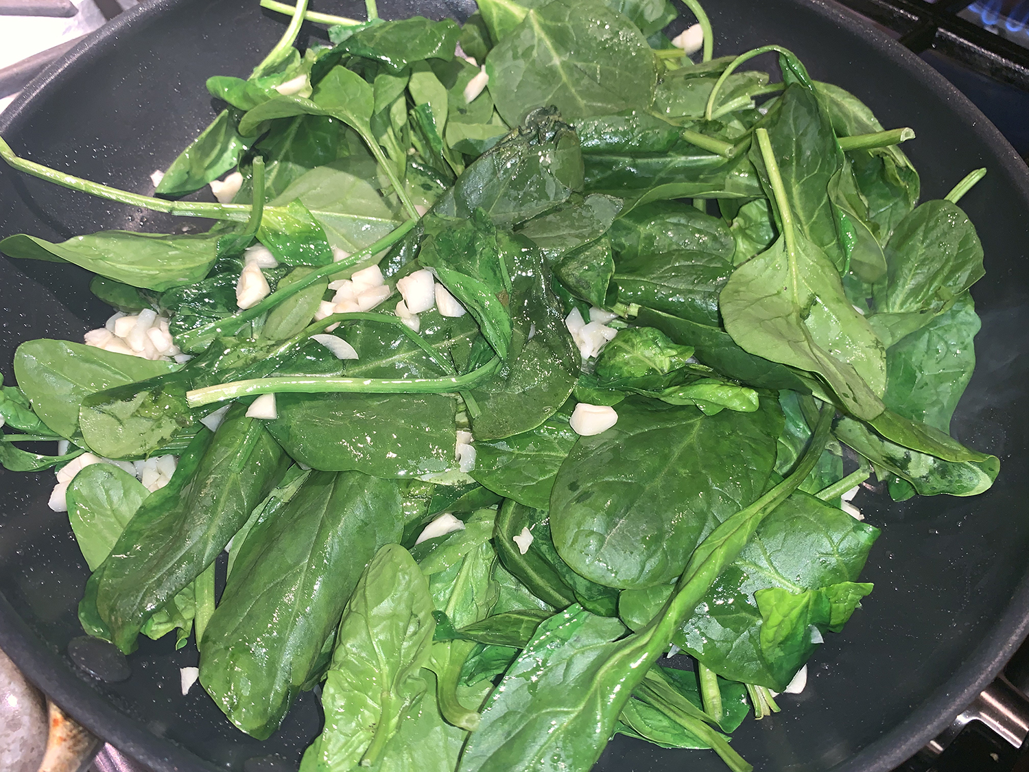 Fresh spinach wilts in at the end, barely needing a minute. The finishing move is a generous spoonful of seasoned ricotta dropped straight into each bowl, where it softens at the edges and slowly folds into the broth — the same creamy counterpoint it’s always provided, just without the oven and the longer wait time.