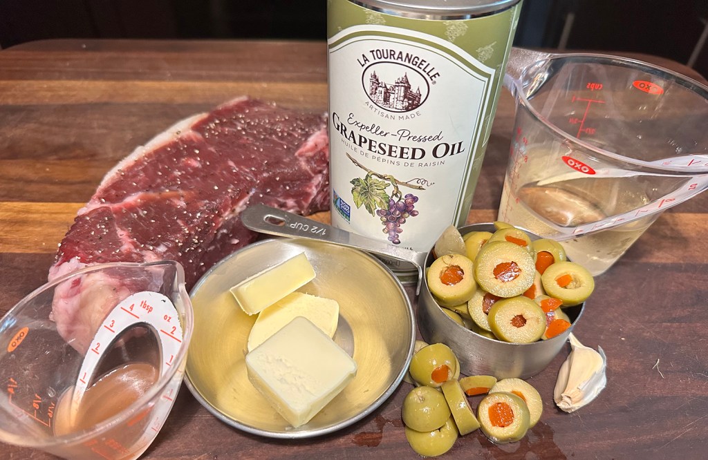 - 2 1-lb. beef strip steaks or ribeye steaks, trimmed