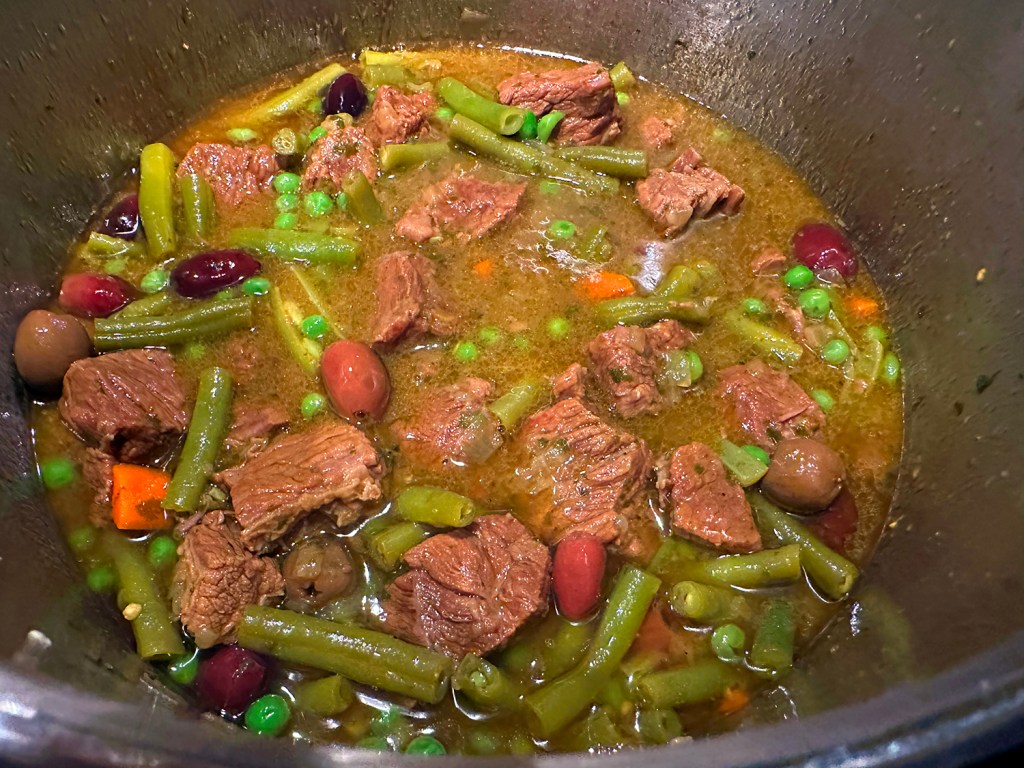 The stew can be made up to 2 days ahead: Skip the degreasing step, cool to room temperature, cover, and refrigerate. Once the stew is chilled, lift the solidified fat off the top with a slotted spoon. Reheat the stew over medium-low heat to serve.