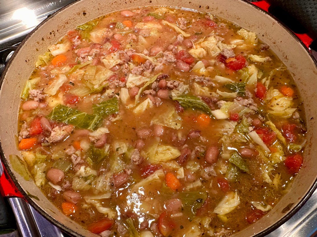 - Add the beer, stirring with the wooden spatula to dissolve any browned bits on the bottom of the pot. Raise the heat to medium high and boil to reduce by about half, 5 to 8 minutes. Add the chicken broth and 1-1/2 cups water. Bring to a boil.