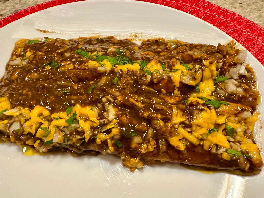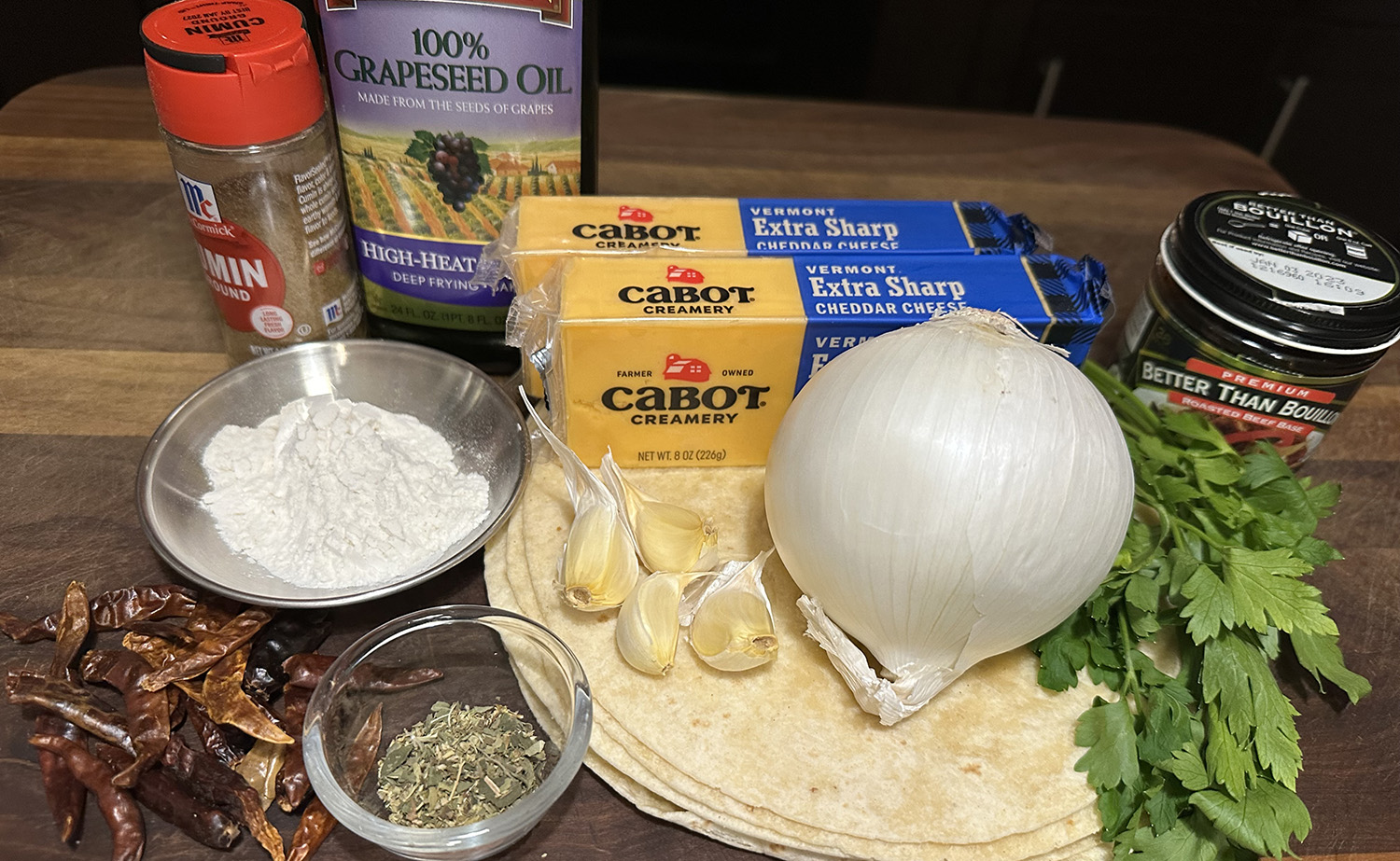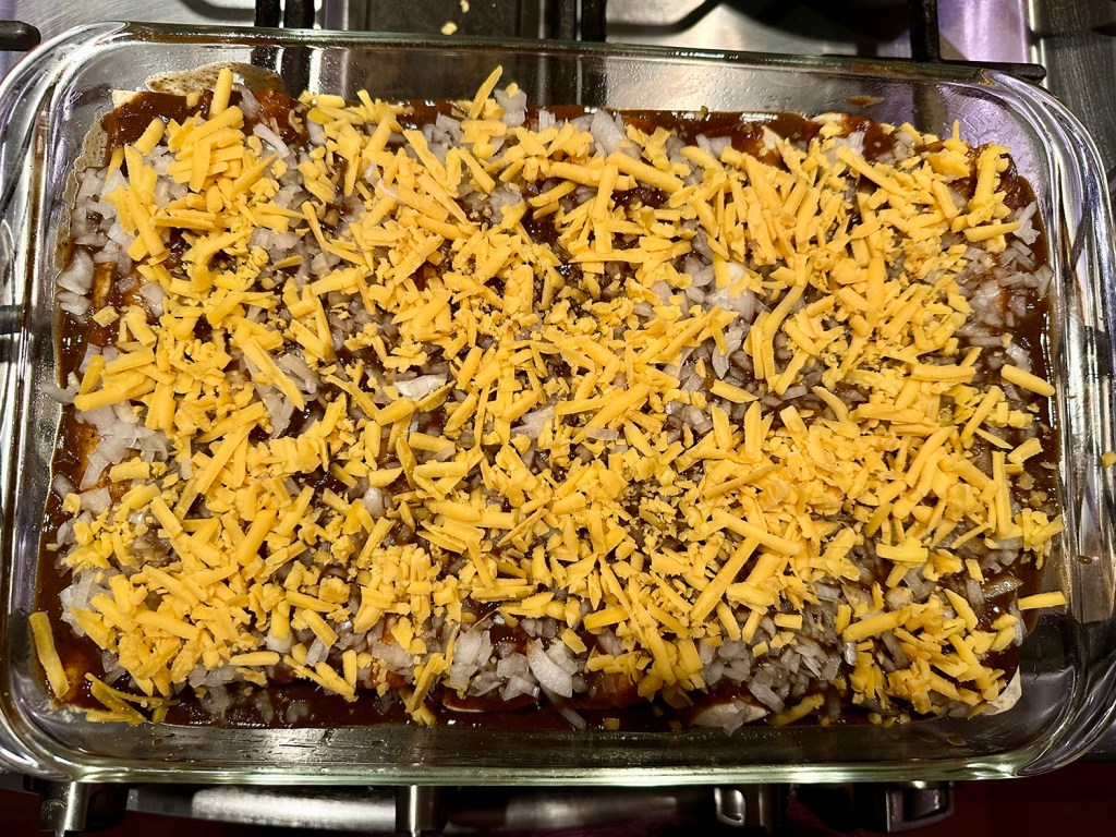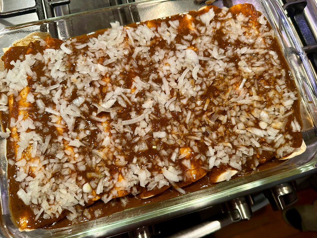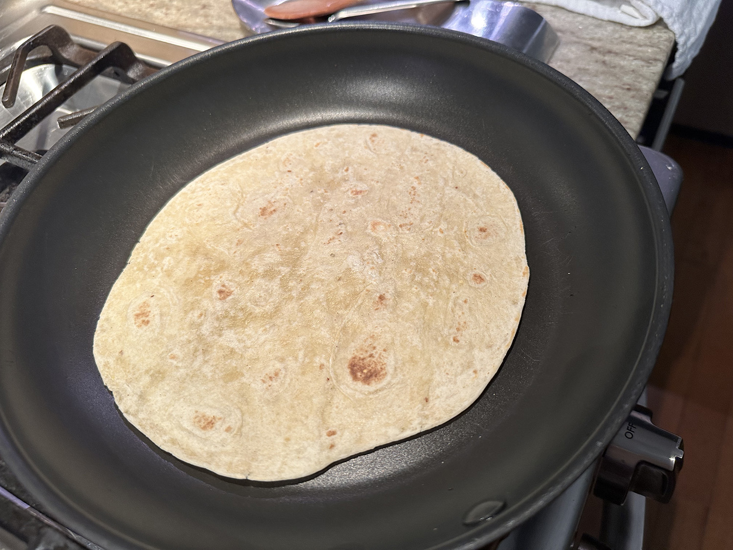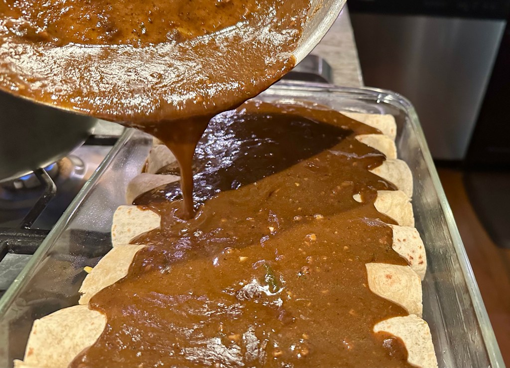 NOTE: Wrap the tortillas in aluminum foil and pop them in the already heated oven for about 10 minutes to soften them and bring out their flavors. You can also char them in a pan on the stove. Or do as we did, wrap them in a moistened paper towel and microwave the stack for one minute.